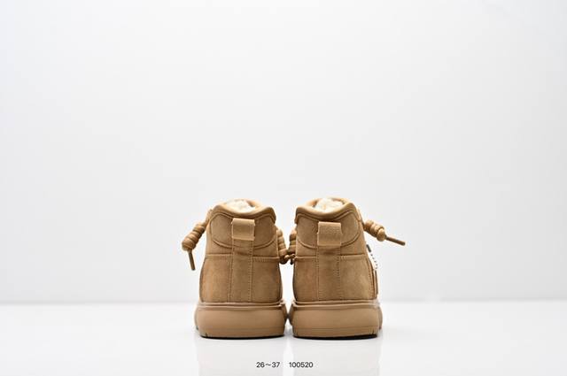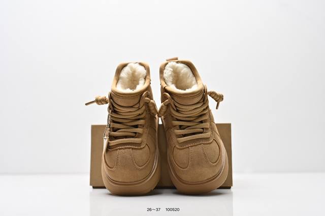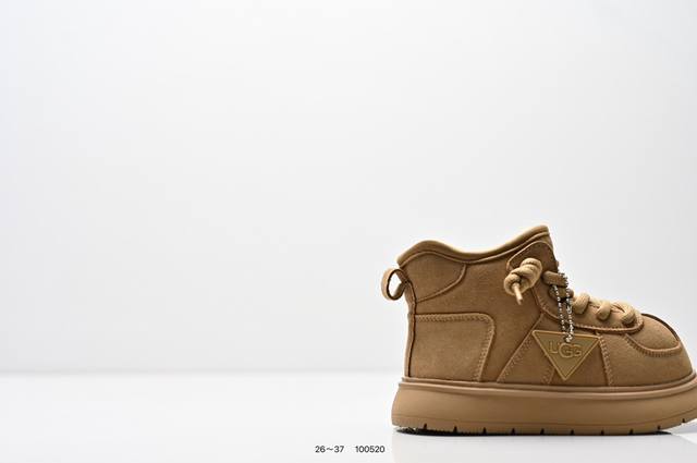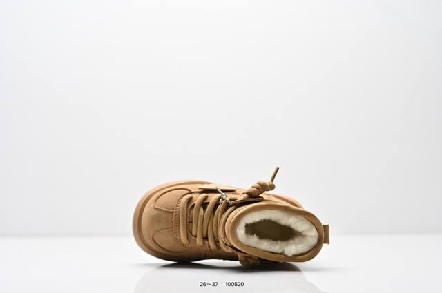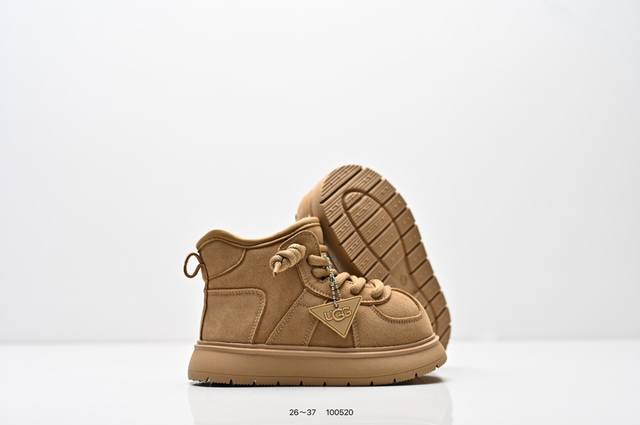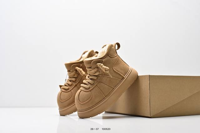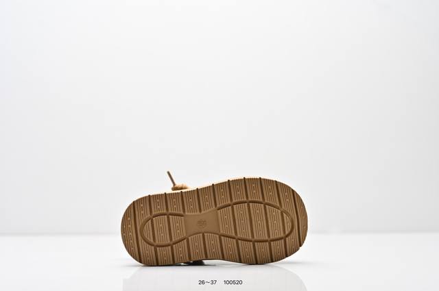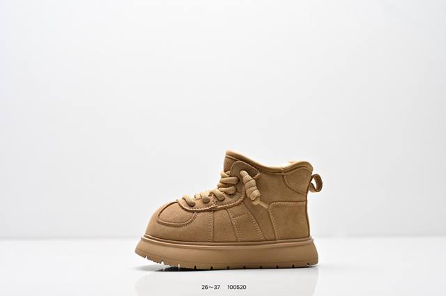Ugg children's shoes, thick-soled, a popular style on Xiaohongshu (Little Red Book), with cashmere insoles. Perfect for winter warmth, whether going out or staying at home. This year, Ugg has launched a series of styles, some catering to younger consumers and moving to the forefront of fashion trends. The shoes feature Uggpure implanted wool insole for lightweight, non-slip, and comfortable wear, and a rubber outsole with the brand logo. Product ID: 100520. Sizes: 26-37.