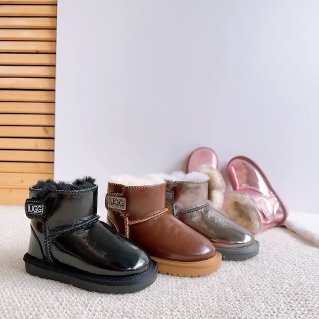 / Ugg children's snow boots with waterproof glossy leather and sheepskin lining. S