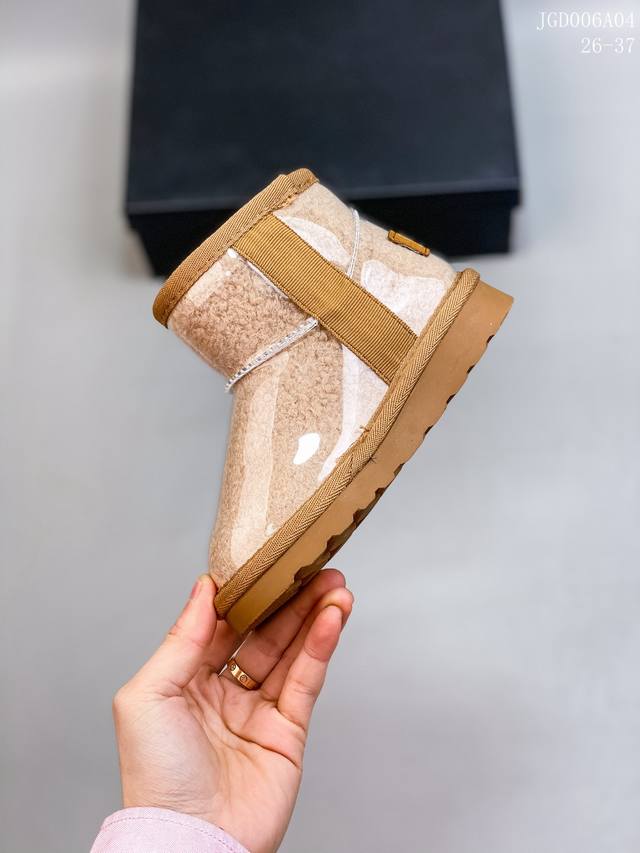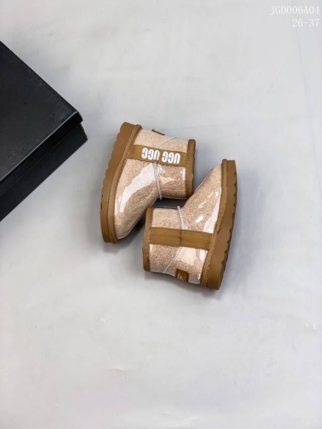 Ugg Hot Selling Style Zhou Dongyu Same Style Jelly Shoes Celebrity Same Style Autumn and Winter New Fleece-Lined Trendy Cotton Shoes Candy Transparent Children's Snow Boots Short Waterproof Non-Slip Warm Thick Sole Slip-on Children's Shoes