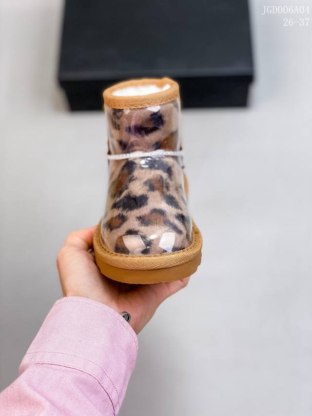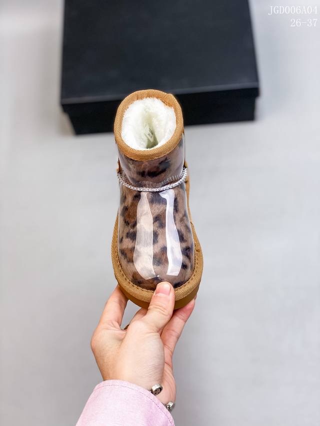 Ugg Hot Selling Zhou Dongyu Same Style Jelly Shoes Celebrity Same Style Autumn and Winter New Fleece-Lined Trendy Cotton Shoes Candy Transparent Children's Snow Boots Short Waterproof Non-Slip Warm Thick Sole Slip-on Children's Shoes