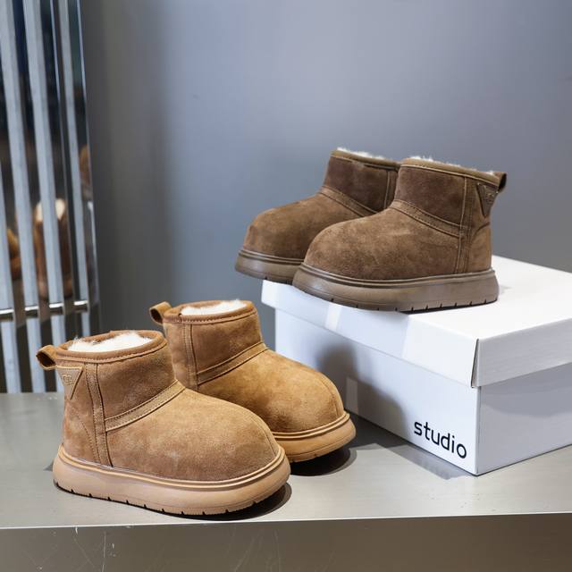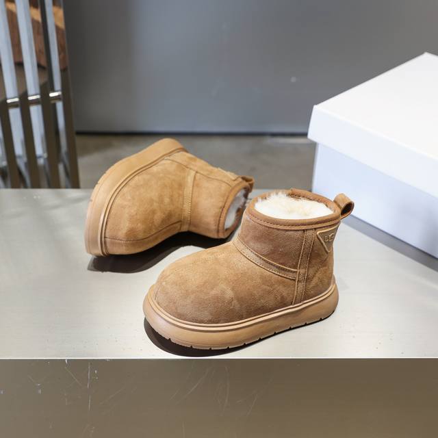 Ugg Hot Selling Zhou Dongyu Same Style Children's Snow Boots Short Boots Non-slip Warm Thick Sole Slip-on Children's Shoes Parent-child Shoes