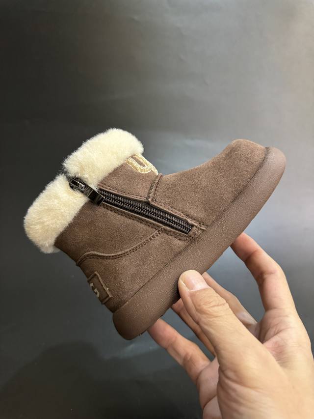 Ugg New Little Potato Wool Plush Children's Snow Boots 26-37 DDD Made of deerskin leather with wool plush lining, warm and soft, DDD Features a zipper design and rubber non-slip sole DDD