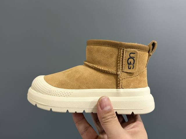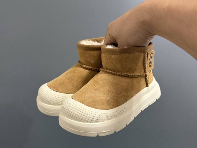 Ugg Tasman Mid-Cut Kids Snow Boots DDD Size: 25-35 DDD Super cool Ugg color-block series DDD Slip-on design, easy to put on and take off DDD Fleece-lined and thickened lining, warm and comfortable DDD