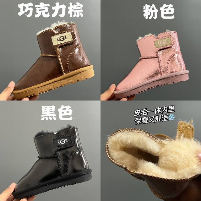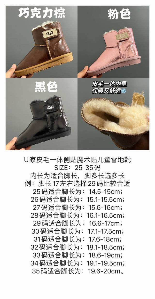 U-Home Fur-lined Side Velcro Children's Snow Boots DDD Size: 25-35 DDD Classic Ugg Snow Boots DDD High-quality leather patchwork, full of texture DDD Velcro design, easy to put on and take off DDD Wear-resistant and non-slip rubber outsole, super comfortable DDD