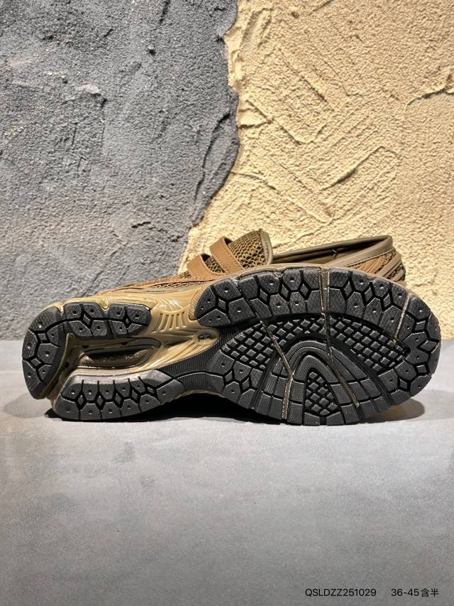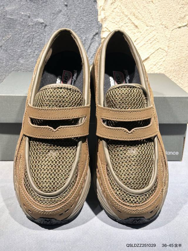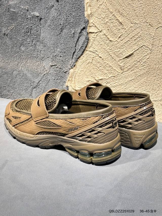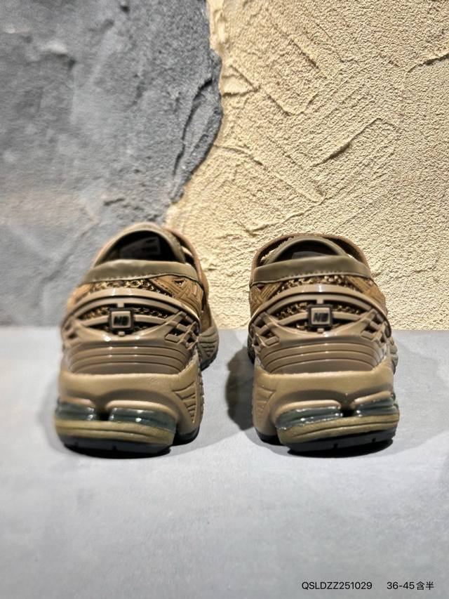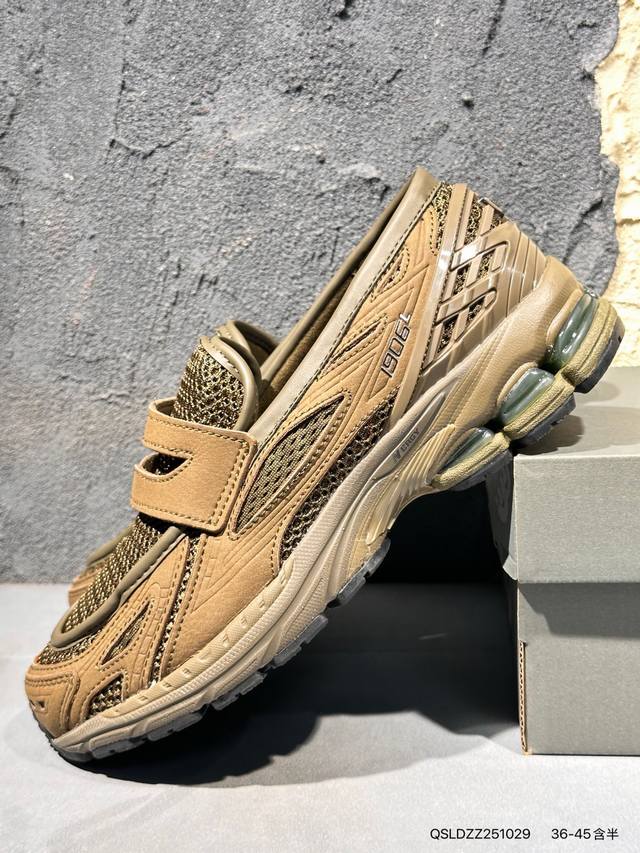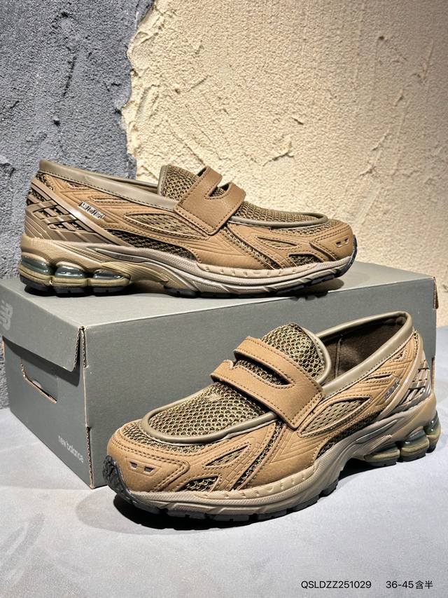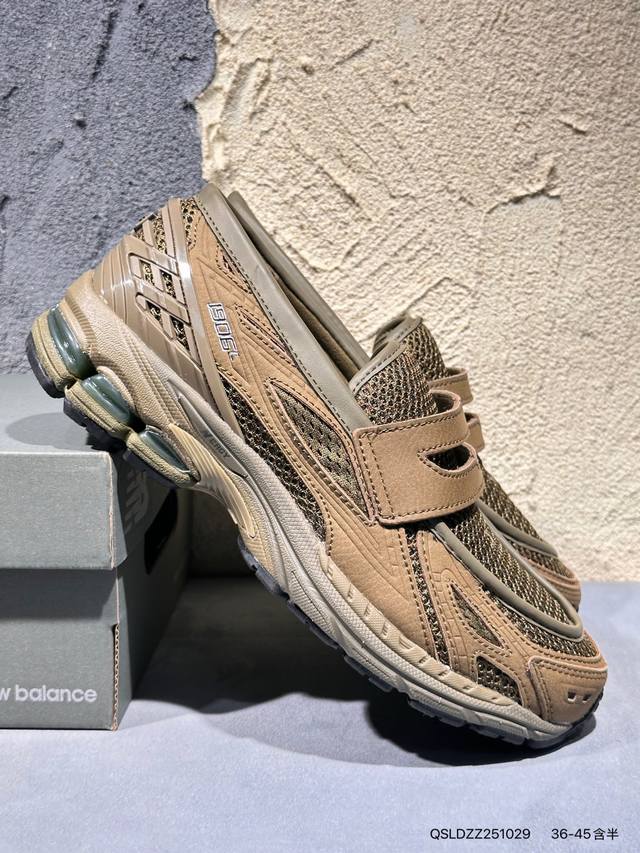 New Balance Warped Runner Uwrpomob Retro Casual Running Shoes. Distressed and aged design for stable gait. T-Beam outsole provides arch support, deconstructed leather. Paved fabric upper, exposed cushioning gel at the heel, and breathable mesh combined with fiber leather.