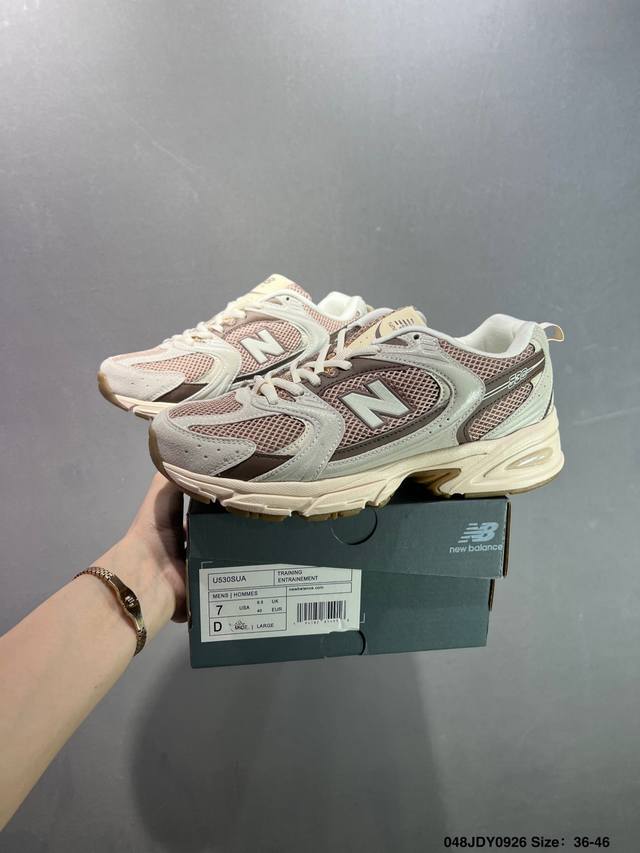 New Balance 530 Retro Running Shoes. This 530 is truly a classic 530 from the New Balance family, reinterpreted with cutting-edge technology to create a truly successful 530. While maintaining the essential lines and layered construction of the 530, the upper utilizes the simple, streamlined design language of