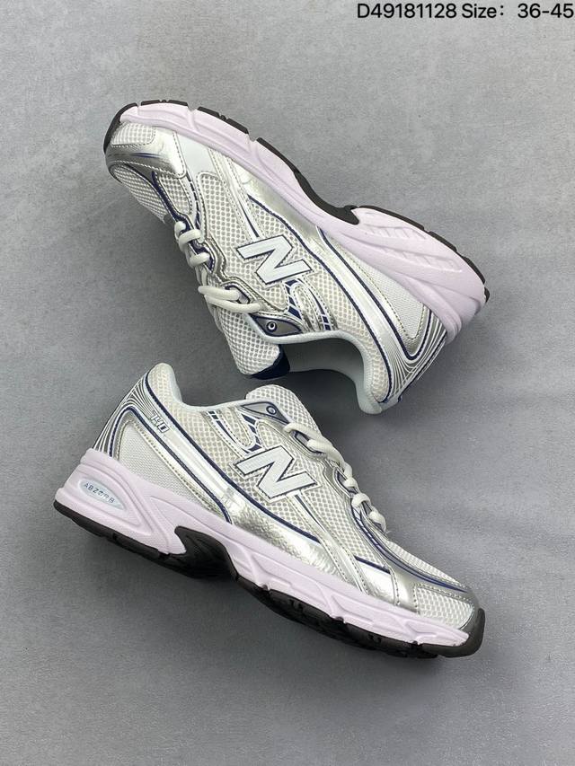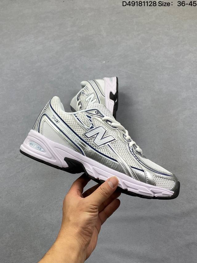 New Balance Mr740 Nb Retro Dad Style Casual Running Shoes. Features a lightweight split leather upper with breathable mesh padding and a T-Beam outsole for arch support and stability. Exposed cushioning gel is located in the heel. The shoe is covered in various shades of gray, with light blue accents at the toe. The mesh padding uses irregular color blocks to create a distressed look, and the yellowed outsole further enhances the retro feel. Type: Men's/Women's Shoes Product Code: U740Bm2 Sizes: 36-45 Code: D49181128