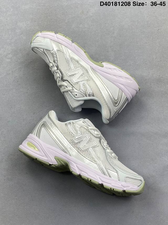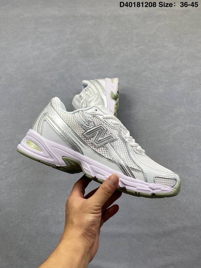 New Balance Mr740 Nb Retro Dad Style Casual Running Shoes. Features a lightweight split leather upper with breathable mesh padding, a T-Beam outsole for arch support and stability, and exposed cushioning in the heel. The shoe is covered in various shades of gray, with light blue accents at the toe. The mesh padding uses irregular color blocks to create a distressed look, and the yellowed outsole further enhances the retro feel. Product Code: U740A Code: D40181208