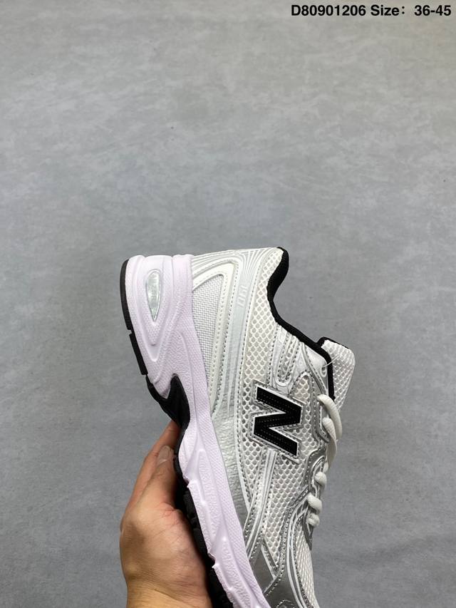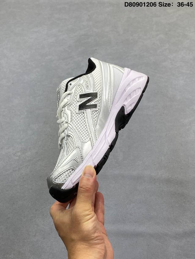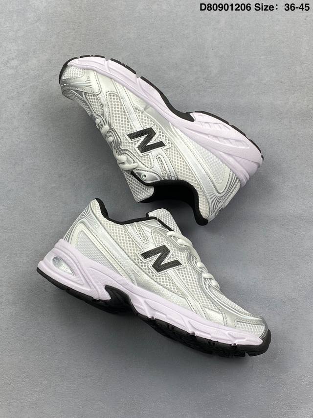 New Balance Mr740 Nb Retro Dad Style Casual Running Shoes. Features a lightweight split leather upper with breathable mesh padding, a T-Beam outsole for arch support and stability, and exposed cushioning in the heel. The shoe is covered in various shades of gray, with light blue accents at the toe. The mesh padding uses irregular color blocks to create a distressed look, and the yellowed outsole further enhances the retro feel. Type: Men's/Women's Shoes Item Number: U740Ap Size: See picture Code: D80901206