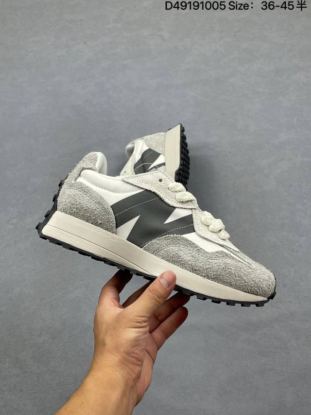 New Balance Ms327 Retro Casual Running Shoes. Featuring a purer retro design, this new style boasts a deconstructed look on the side, with the N logo presented in an aged embossed pattern. Official Product Code: U327Lz Sizes: 36 37 37.5 38 38.5 39.5 40 40.5 41.5 42 42.5 43 44 45 ID: D4919 5