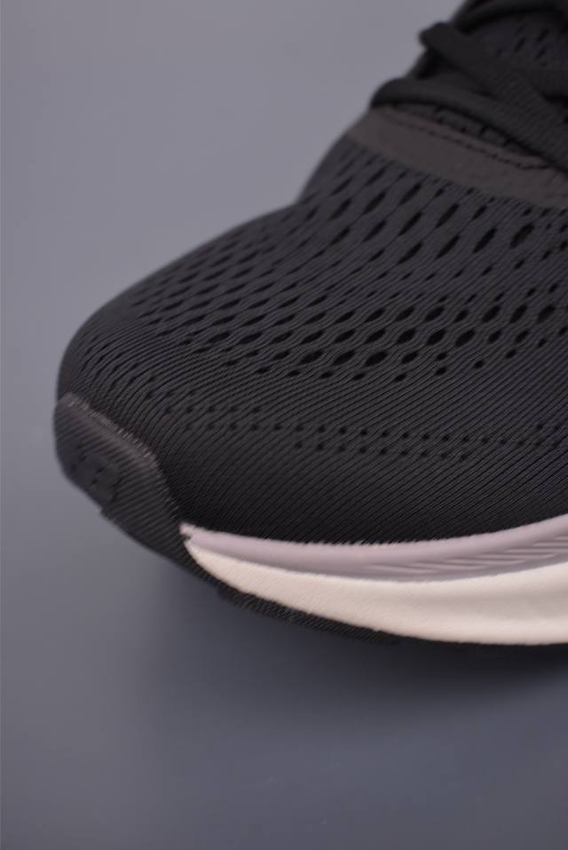 This innovative running shoe features a smooth engineered knit upper and a tongue with a gusset plate for a comfortable feel at high speeds