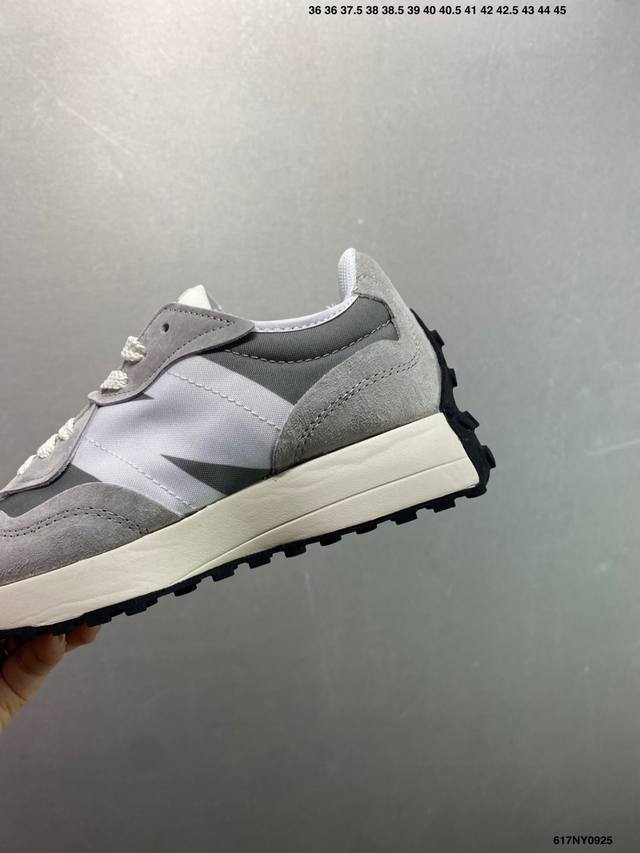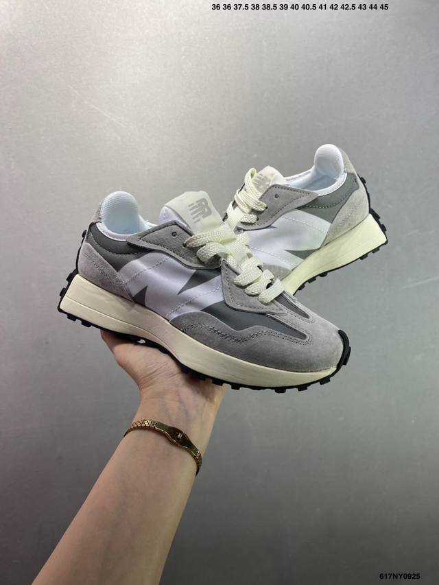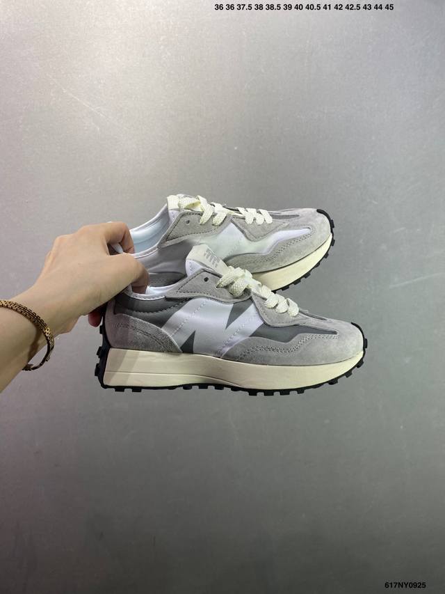 New Balance Nb327 Series Leather Retro Casual Sports Jogging Shoes Ws327Ra The new New Balance 327 series features a fresh look with a more authentic retro design. The deconstructed side panels feature the N logo in a distressed embossed style, creating a unique and innovative look. The suede and perforated leather create a sophisticated, nostalgic aesthetic, striking a balance between luxury fashion and sporty flair.