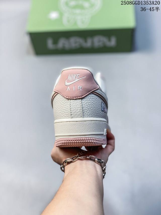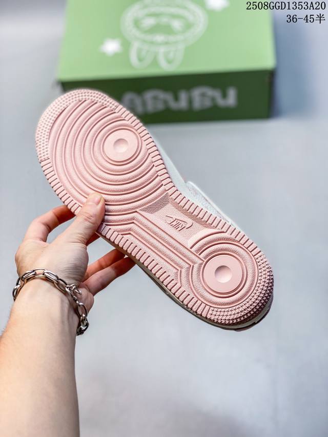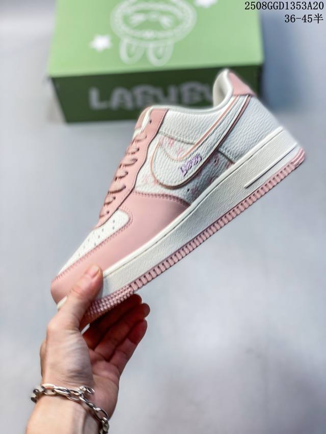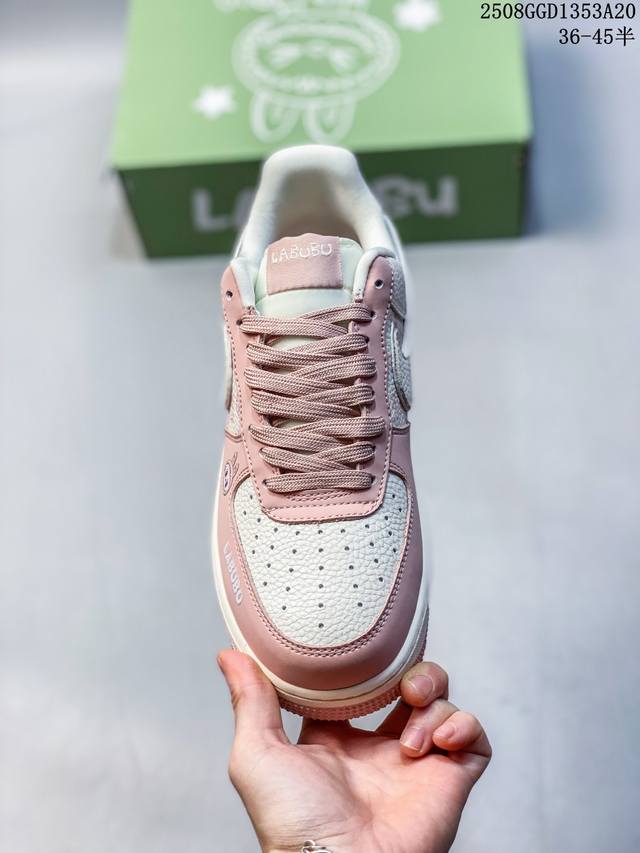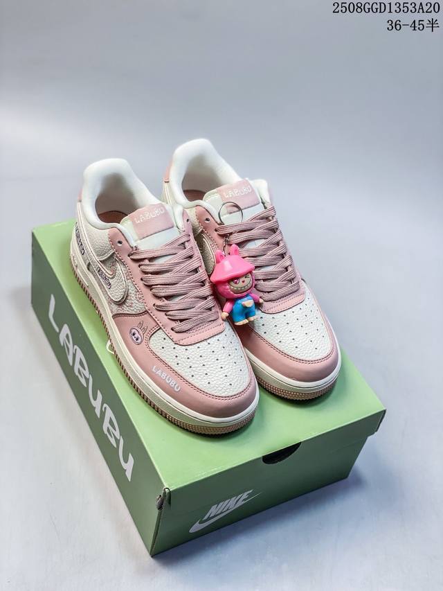 A limited-edition hit from overseas! This high-end custom Nike Air Force 1 Labubu collaboration features cute Labubu elements throughout the white and pink upper, paired with a matching charm. Through printing and embroidery, the Labubu elements are precisely applied to the upper, creating a vibrant color and crisp pattern that highlights the sincerity and quality of the collaboration. Based on the Nike Air Force 1, it retains the classic Air Force One's comfortable feel and retro silhouette, combining fashion and practicality. The exclusive green Labubu shoebox enhances the collaboration's aesthetic, and the overall production emphasizes trendy integration and quality control.