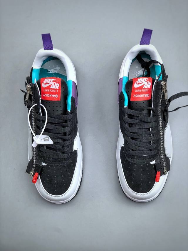 Acronym x Nike Lunar Force 1 collaboration. Original zipper and cardboard create a pure low-top Air Force style. Focusing on foreign trade channels. Full-length built-in honeycomb air cushioning. Original box and accessories. Original midsole, stenciled steel, and perfect zippers. Item number: 698966 002. Sizes: 36-45