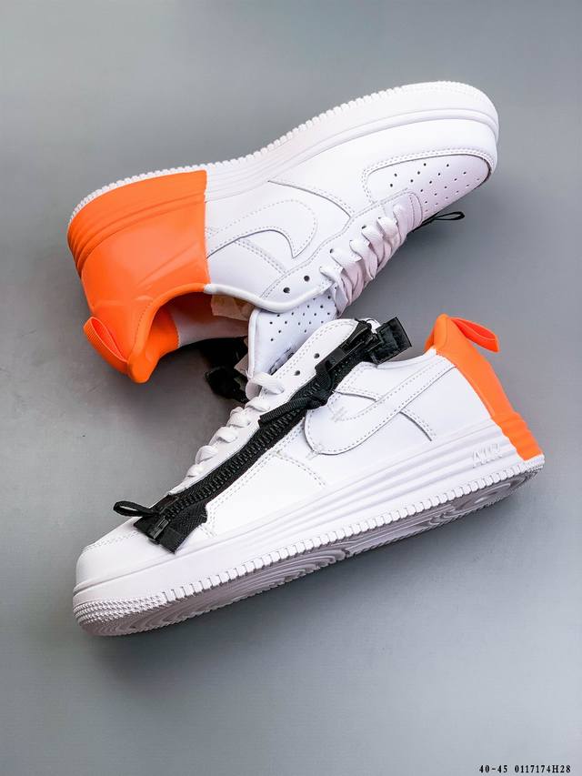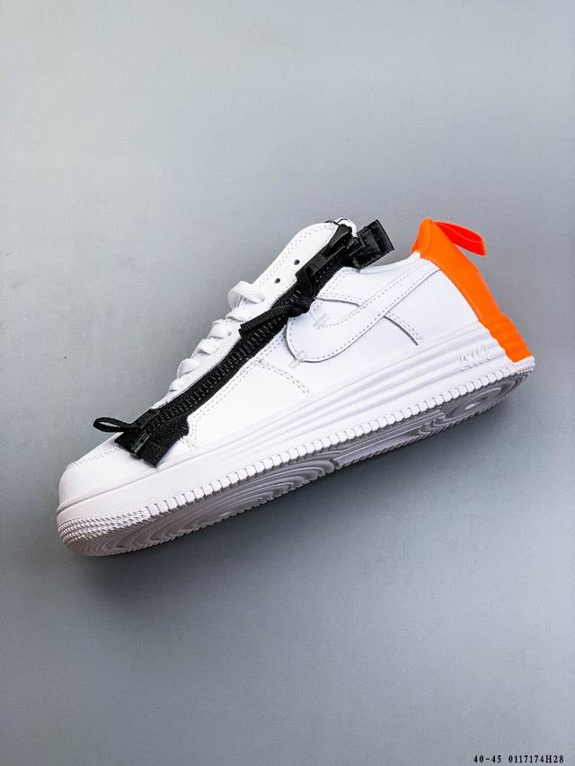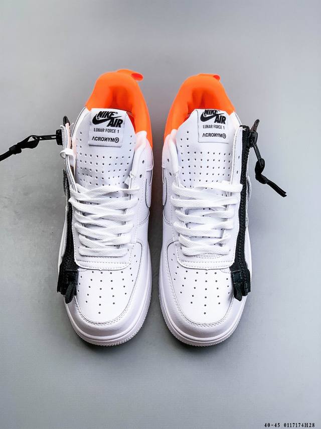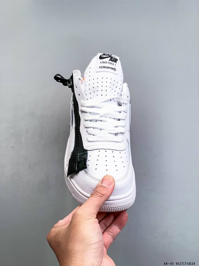 Acronym X Nike Lunar Force 1 Collaboration Zippered Casual Fit Durable Low-Top Sneakers DDD This Nike Lunar Force 1 X Acronym collaboration features a pure Triple White color scheme. It retains the low-top Lunar Force 1 silhouette, incorporating a functional zipper for high recognizability and a strong visual impact. DDD Style Code: 698699-001 DDD 0117174H28 DDD