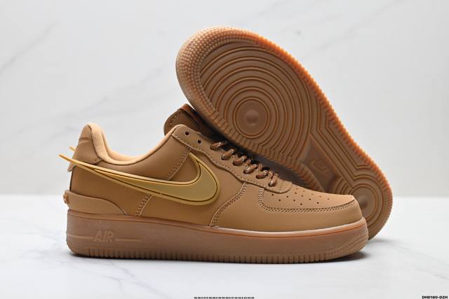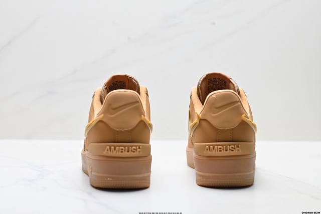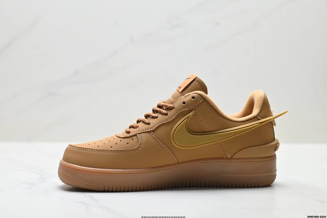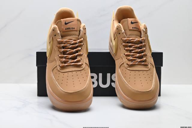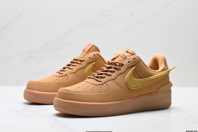 Authentic Ambush X Nike Air Force 7 Low Collaboration Low-Top Casual Sneakers. The shoe features a solid-color leather upper and lining, with the iconic oversized Swoosh prominently displayed. The tongue tag also features the Nike logo. The laces have unique buckle designs, and the heel incorporates a TPU design. Style Code: Dv3464-500. Sizes: 36, 36.5, 37.5, 38, 38.5, 39, 40, 40.5, 41, 42, 42.5, 43, 44, 45. ID: Dhd -Dzh