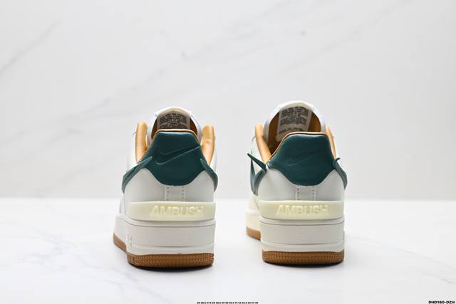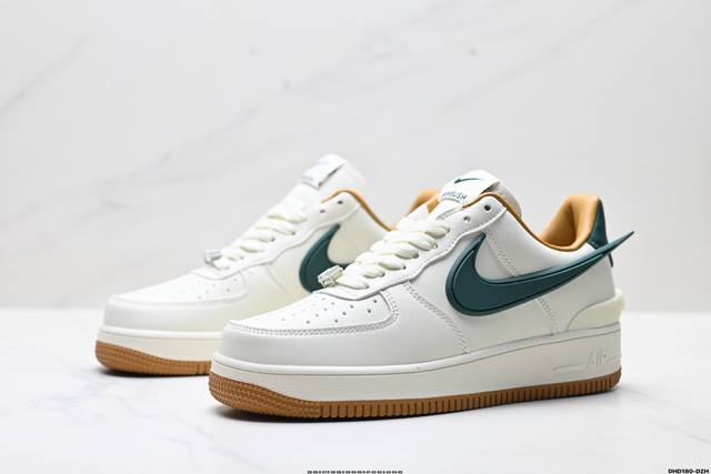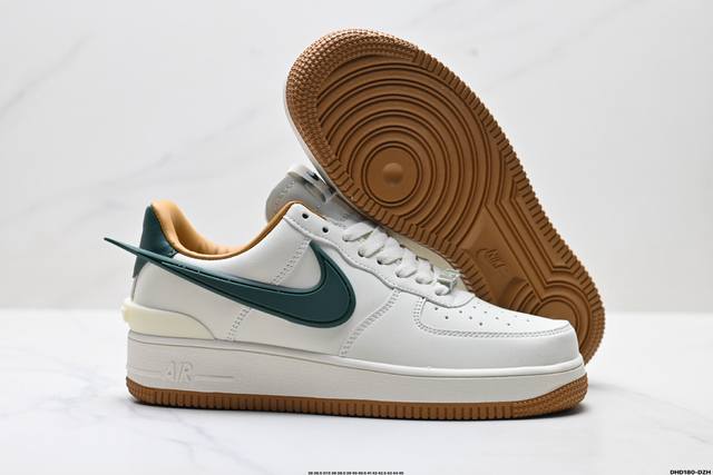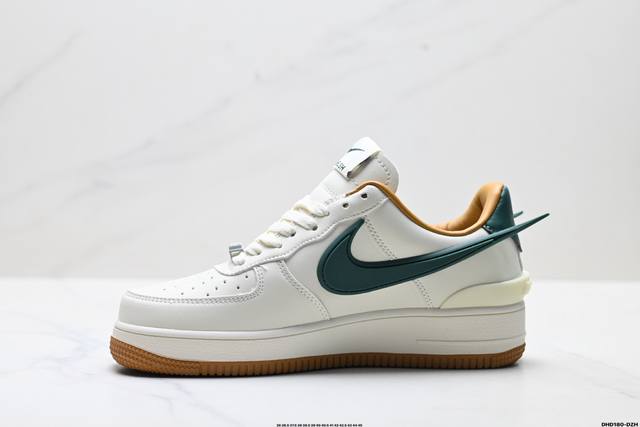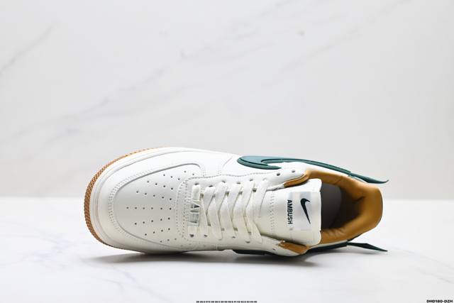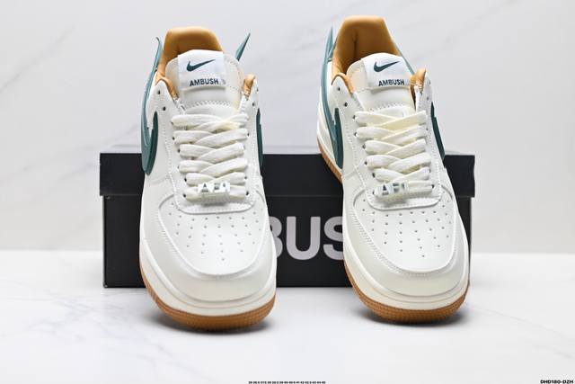 Authentic Ambush X Nike Air Force 7 Low Collaboration Low-Top Casual Sneakers. The shoe features a solid-color leather upper and lining, with the iconic oversized Swoosh prominently displayed. The tongue tag also features the Nike logo. The laces have unique buckle designs, and the heel incorporates a TPU design. Style Code: Dv3464-500. Sizes: 36, 36.5, 37.5, 38, 38.5, 39, 40, 40.5, 41, 42, 42.5, 43, 44, 45. ID: Dhd -Dzh