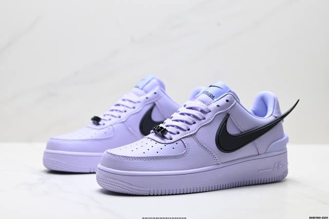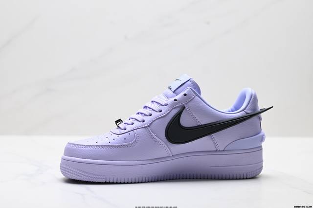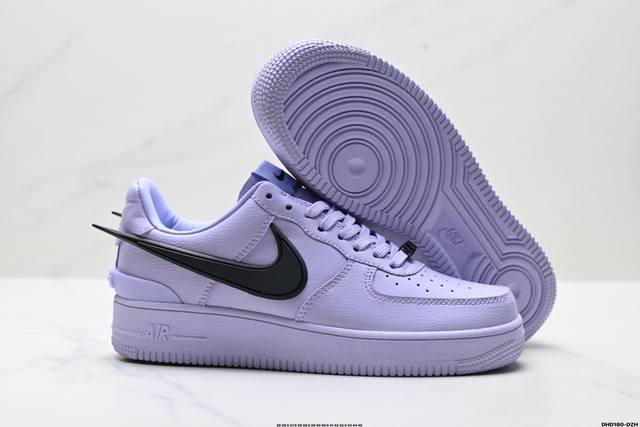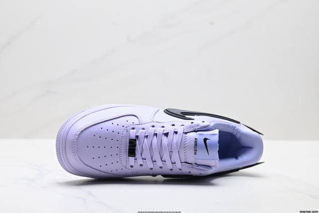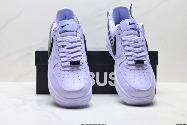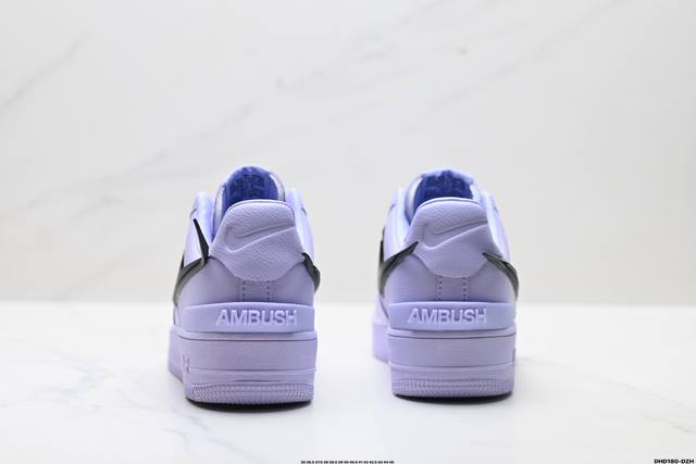 Authentic Ambush X Nike Air Force 7 Low Collaboration Low-Top Casual Sneakers. The shoe features a solid-color leather upper and lining. The iconic oversized Swoosh is prominently displayed. The tongue tag also features the Nike logo. The laces have unique buckle designs. The heel features a TPU design. Style Code: Dv3464-500. Sizes: 36, 36.5, 37.5, 38, 38.5, 39, 40, 40.5, 41, 42, 42.5, 43, 44, 45. ID: Dhd -Dzh