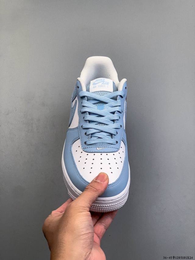 Nike Air Force 1 Low White/Blue. Made with original last and cardboard, this is