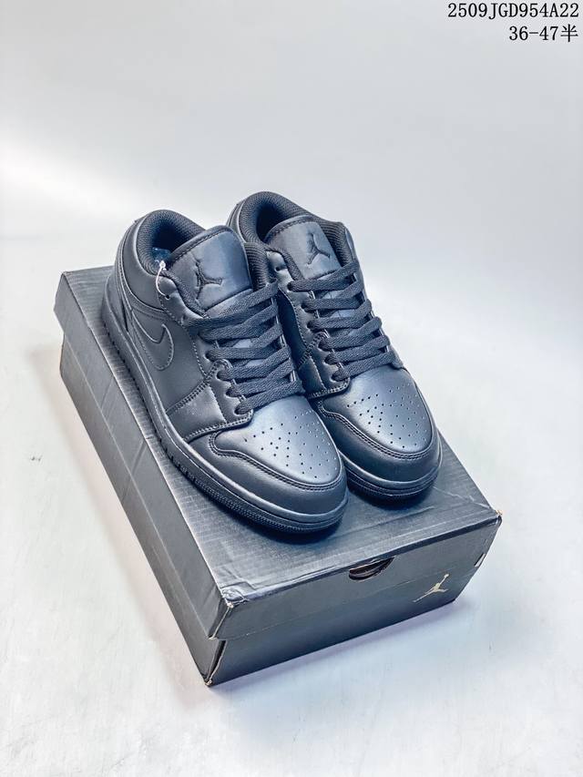 Nike Jordan Air Jordan 1 Low Aj1 Joe 1 Jordan 1 generation Aj1 low-top retro cultural casual sports basketball shoes. This shoe draws design inspiration from the original 1985 model, reinterpreting the simple classic look, making it familiar yet refreshing. Stitching details and the embroidered Wings logo on the heel highlight the unique and exclusive style of the Jordan brand. The leather upper creates a superior sense of structure and durability. The sole incorporates Nike Air cushioning technology to create a lightweight cushioning feel, and the outsole is infused with rubber for extraordinary traction, making it an ideal everyday choice. The heel is decorated with the Wings logo, the toe is perforated, and the foam midsole is used.