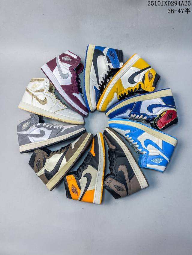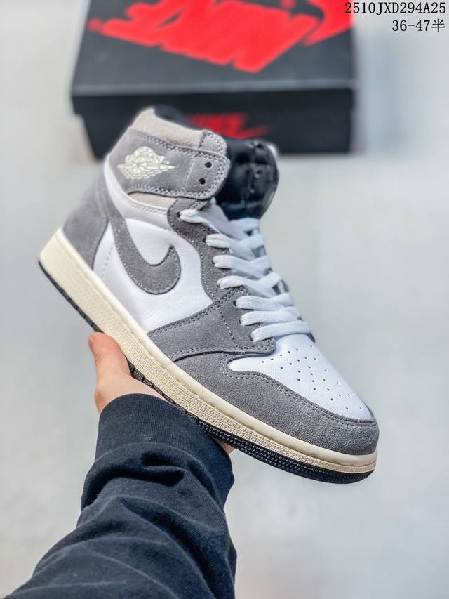 Authentic Nike Air Jordan 1 Retro High Og (with half sizes) - This high-top basketball shoe features a leather upper inspired by athletic jackets, bringing back memories of your first time on the team. It boasts a classic preppy colorway and a large Nike Swoosh design, creating a distinctive style to accompany you on your journey. The natural leather upper provides exceptional durability and structural integrity, showcasing its superior style. The heel features Air cushioning technology for lightweight shock absorption. The shoe's edging uses the same design and thick stitching details as the original AJ1, creating stable support. (Style code: 12Jgd382A25) Size: 36-47 (including half sizes) Code: 10Jxd294A25
