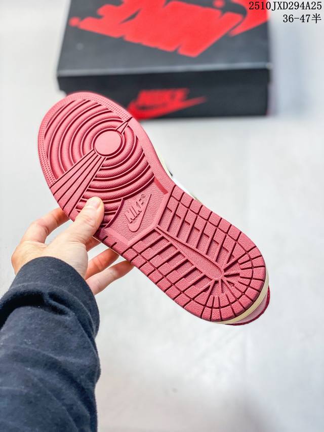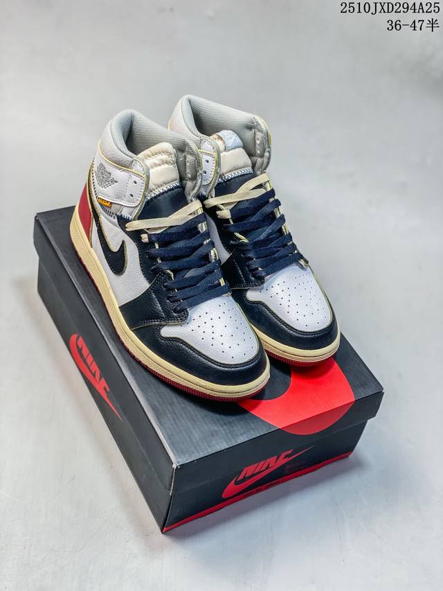 Authentic Nike Air Jordan 1 Retro High Og (with half sizes) - This high-top basketball shoe features a leather upper inspired by athletic jackets, bringing back memories of your first time on the team. It boasts a classic preppy colorway and a large Nike Swoosh design, creating a distinctive style to accompany you on your journey. The natural leather upper provides exceptional durability and structural integrity, showcasing its superior style. The heel features Air cushioning technology for lightweight shock absorption. The shoe's edging uses the same design and thick stitching details as the original AJ1, creating stable support. (Style code: 12Jgd382A25) Size: 36-47 (including half sizes) Code: 10Jxd294A25