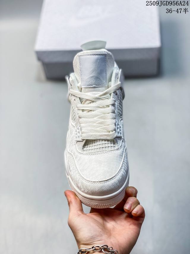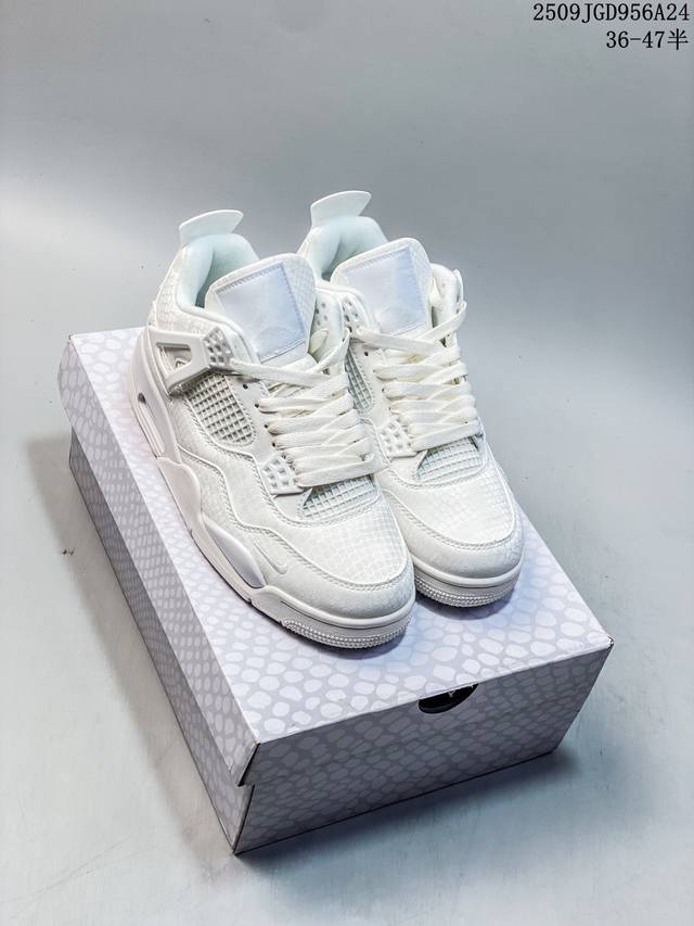 Authentic Nike Air Jordan 4 Retro Og Michael Jordan Aj4 Generation Joe 4 mid-top retro casual sports culture basketball shoes. Designed with the philosophy of lightweight speed basketball shoes in mind, reducing weight while improving comfort, the midsole continues the previous model's use of a split rear-foot visible Air Sole cushioning. The lace eyelets and heel tab are inspired by basketball nets, cleverly integrating basketball into the shoe's design, giving the overall shoe an overall fluidity, rhythmic feel, and elegance.