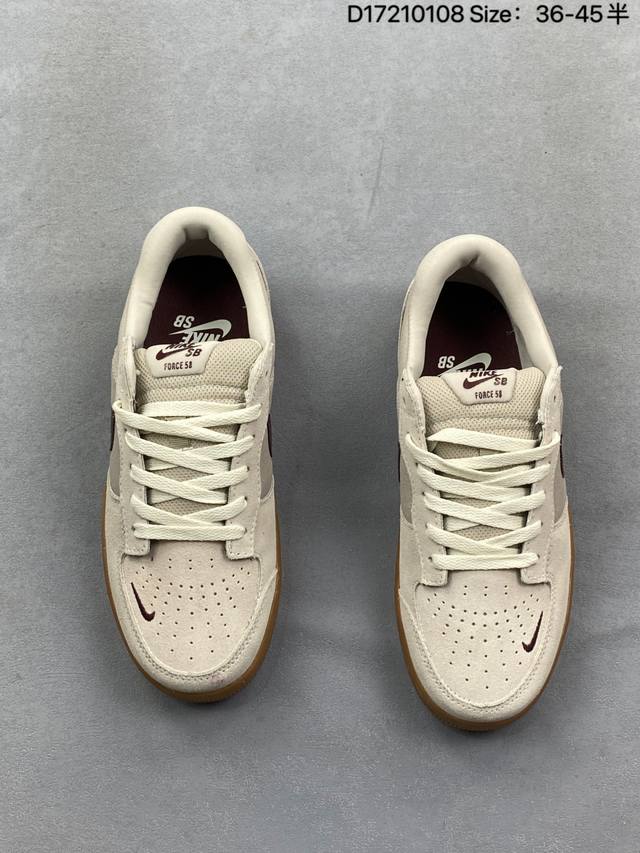 Authentic Nike SB Force 58 Low-Top Casual Sneakers DDD This is a streetwear item that brings cutting-edge innovation to the streets. It features a vulcanized cup sole for excellent durability and flexibility, and uses canvas and suede with ventilation holes on the upper. DDD Style Code: Dv5477-203 DDD Sizes: 36 36.5 37.5 38 38.5 39 40 40.5 41 42 42.5 43 44 45 DDD ID: D17210108 DDD