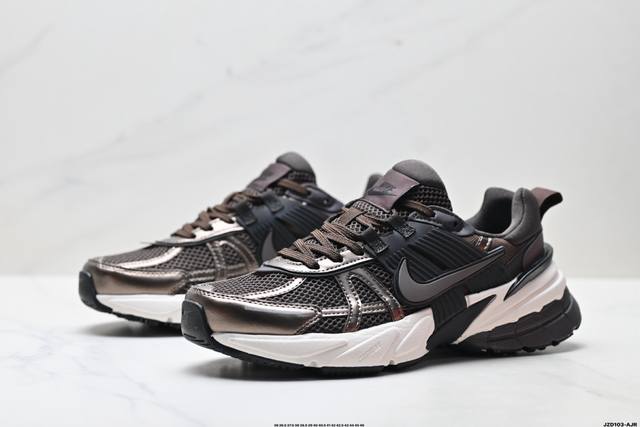 Authentic Nike V2K Run Retro Style Breathable Mesh Sneakers. The grey and silver upper provides excellent support. Chrome details on the side Swoosh and toe add visual interest. The insole features a Bill Bowerman portrait, enhancing the overall detail. The midsole has a unique distressed effect, and the black outsole accentuates the retro feel. Product Code: Hj4497-200 Sizes: 36, 36.5, 37.5, 38, 38.5, 39, 40, 40.5, 41, 42, 42.5, 43, 44, 45, 46 ID: Jzd103-Ajr