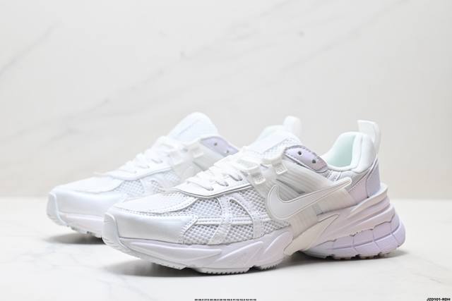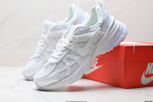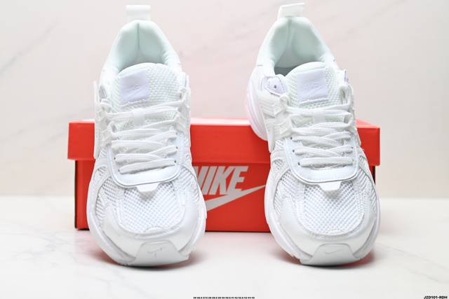 Authentic Nike V2K Run running shoes, retro style mesh breathable sports shoes in gray and silver. The tight upper material provides good wrapping. The Swoosh on the side of the shoe and the toe part are matched with chrome details that add a lot of highlights. The insole is printed with Bill Bowerman's portrait to add details. The midsole is decorated with a unique distressed effect and finally equipped with a black outsole to highlight the retro temperament of the whole shoe.