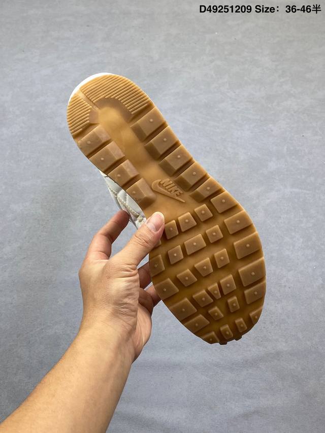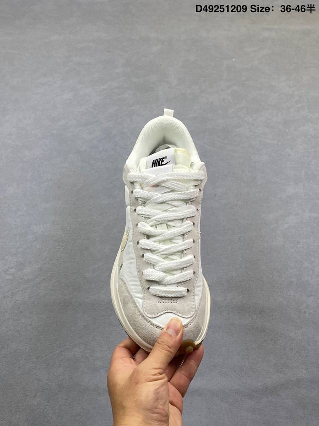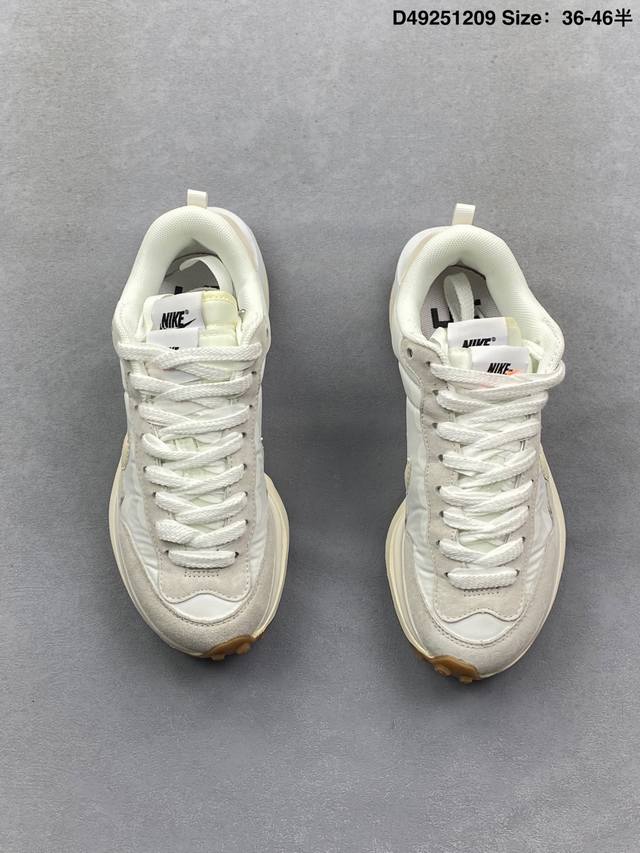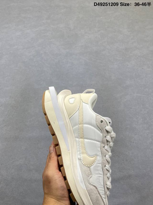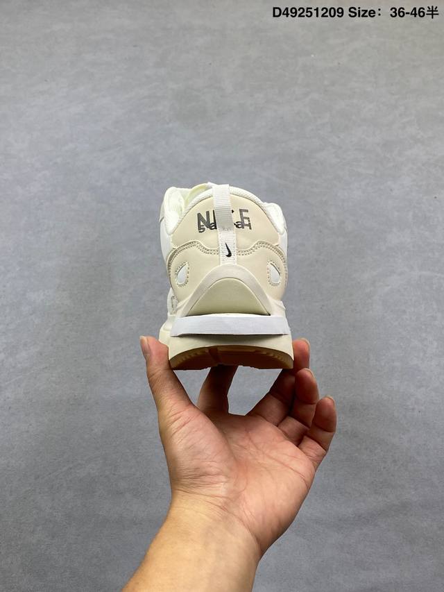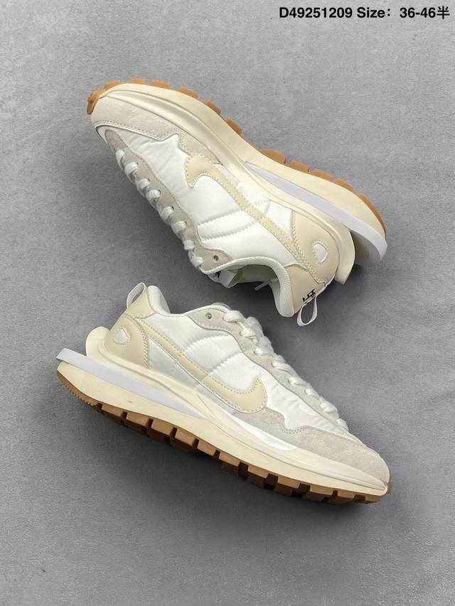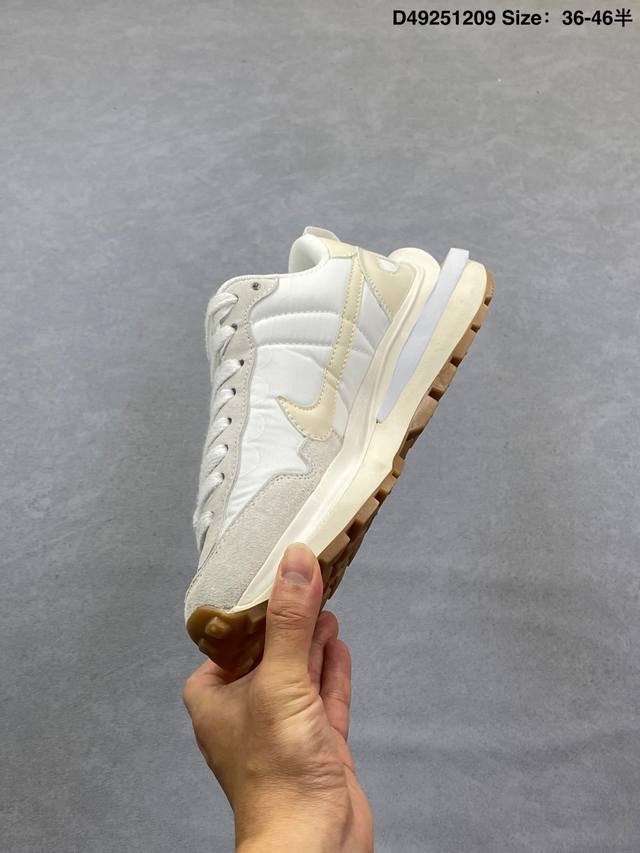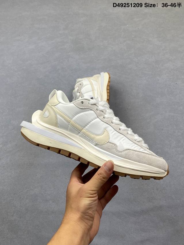 Authentic Nike Vaporwaffle Sacai 50th Anniversary Series Retro Casual Running Shoes. The shoe combines design elements from the Pegasus and Vaporfly silhouettes. The upper is constructed from suede and breathable mesh, featuring a familiar deconstructed design with overlapping Swoosh logos, a double tongue, and the signature Sacai lettering on the laces and heel. Style Code: Dd1875-200. Sizes: 36, 36.5, 37.5, 38, 38.5, 39, 40, 40.5, 41, 42, 42.5, 43, 44, 45. Code: D49251209.