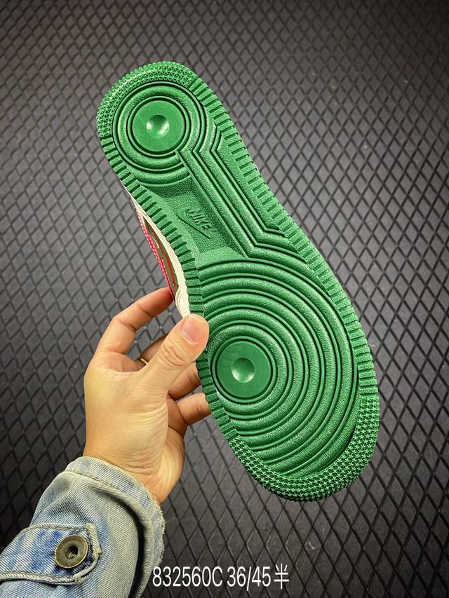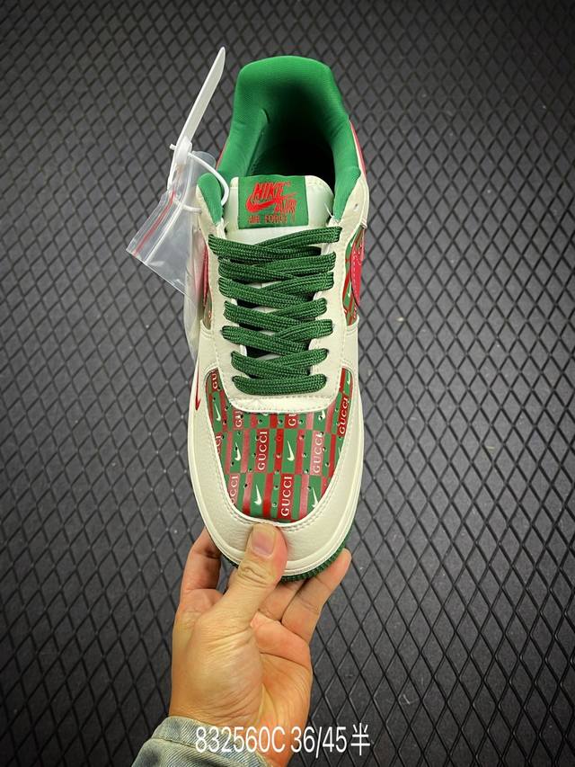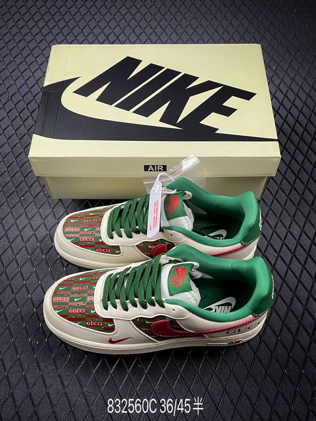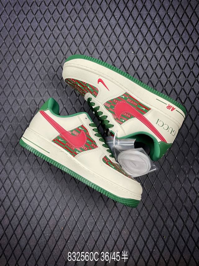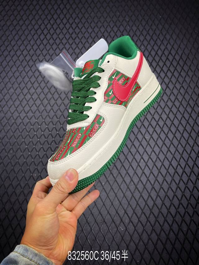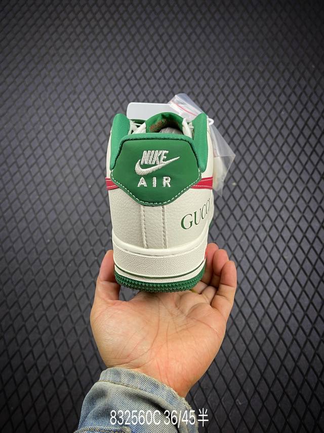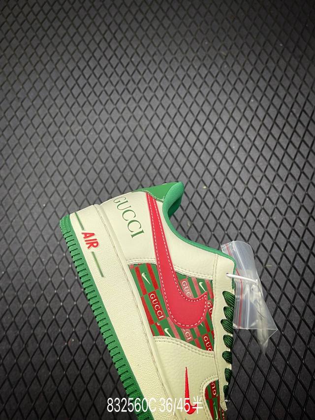 Limited edition overseas sale! Corporate-grade Nike Air Force 1 '07 Low "Gucci co-branded beige, green and red swoosh" Air Force One low-top sneakers and casual shoes. The hem sewing process is difficult. Original last, original cardboard, original shoe box, custom hardware accessories, built-in full-palm air cushioning, original sole
