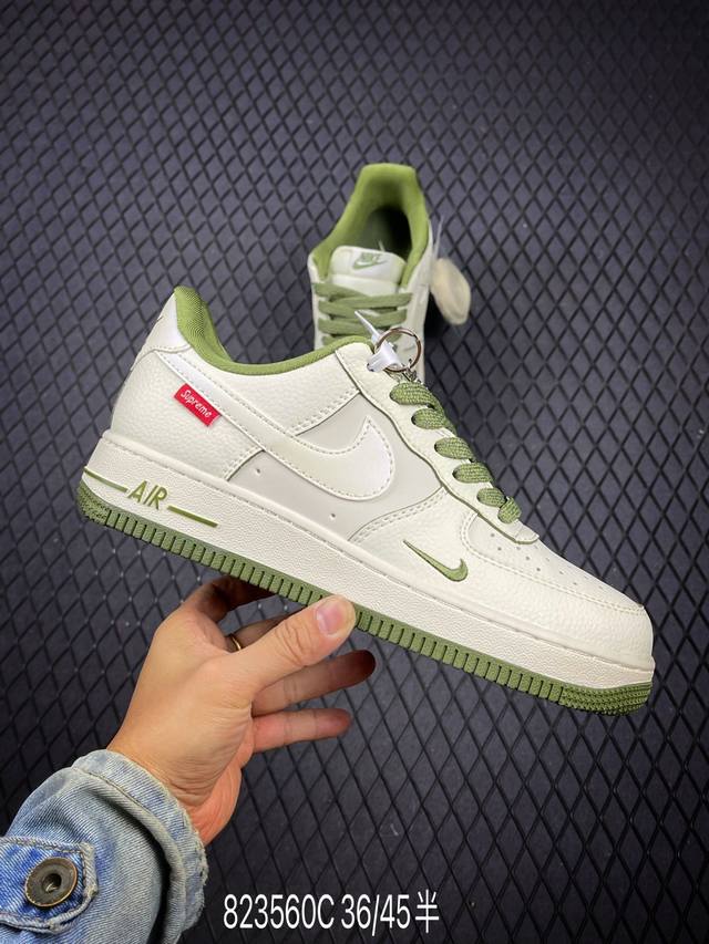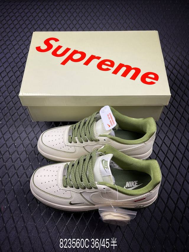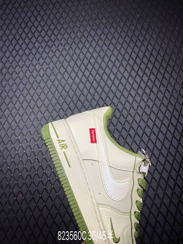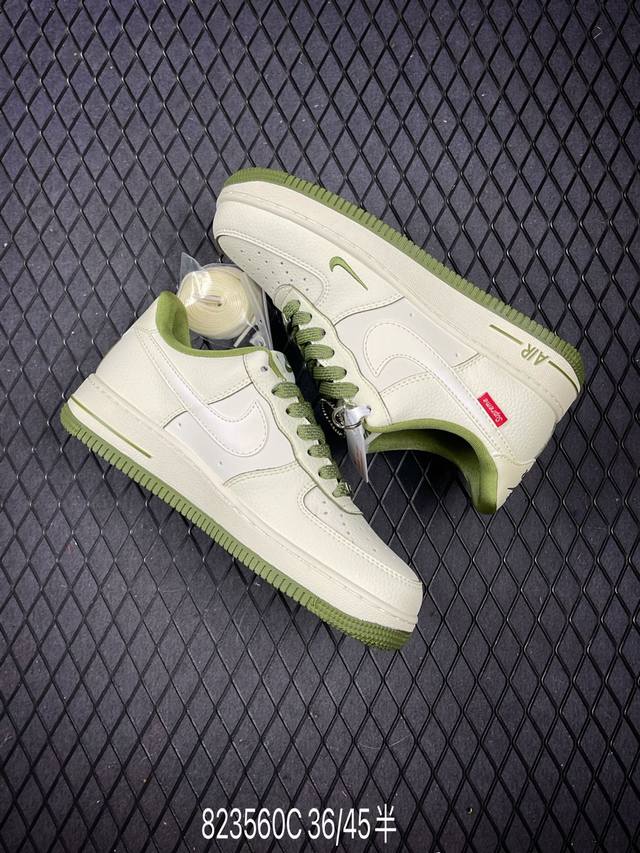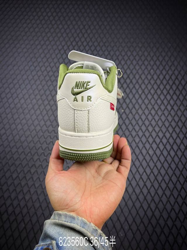 Limited edition overseas sale! Corporate-grade Nike Air Force 1 '07 Low "Supreme co-branded off-white military green edge" Air Force One low-top sneakers and casual shoes. The hem sewing process is difficult. Original last, original cardboard, original shoe box, custom hardware accessories, built-in full-palm air cushioning, original sole