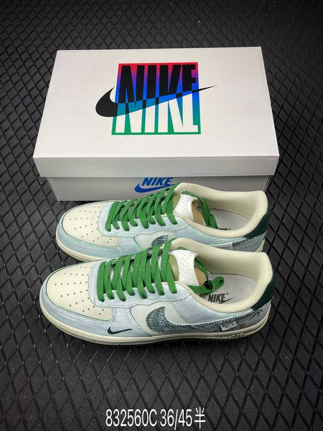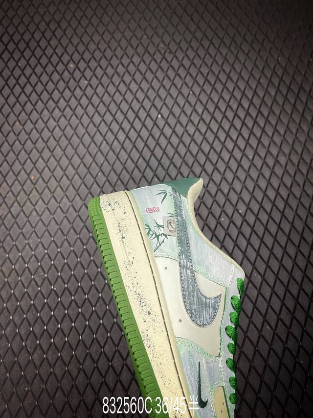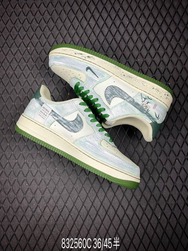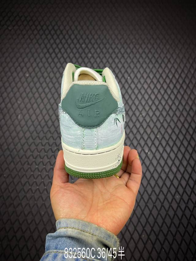 C Ddd Nike Air Force 1 '07 Low Bamboo In Ink Wash Hand-painted Graffiti Green Bamboo Ink Wash Air Force 1 Low-top Casual Sneakers Fb1839-123 Ddd #The shoe body is based on a light celadon color, with a bamboo branch textured logo that is blurred with ink wash. The logo is wrapped in bamboo leaf texture, and the bamboo shadow details on the side of the shoe echo the ink spots. It is paired with dark bamboo green shoelaces and trim, just like the artistic conception of a bamboo forest in the rain. It makes the street shoe reflect the literary spirit of "I would rather eat no meat than live without bamboo". Ddd Sizes: 36 36.5 37.5 38 38.5 39 40 40.5 41 42 42.5 43 44 44.5 45 Ddd Code: 832560C DDD