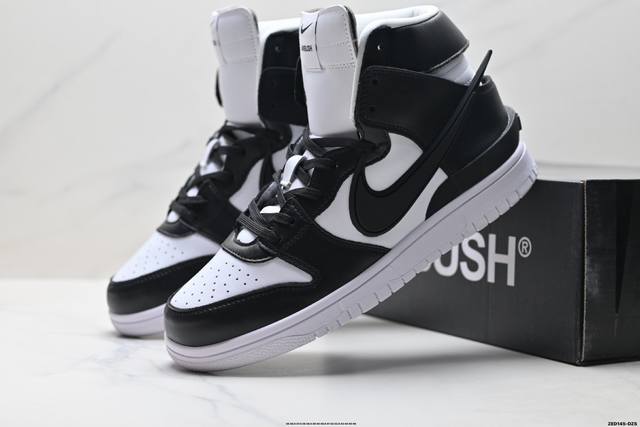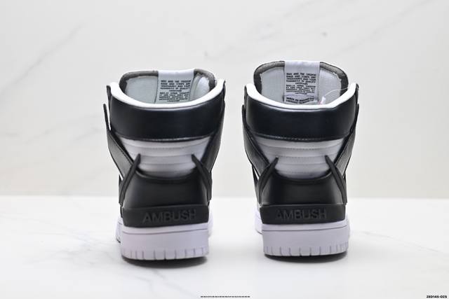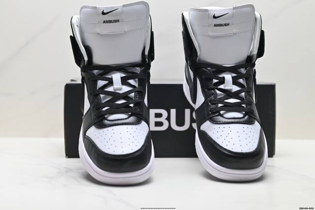 Company Grade Ambush X Nike Dunk High Collaboration Nike Black and White High-Top Sneakers. Featuring an extended Swoosh logo that extends beyond the heel and upper, this shoe's highlight is the bold design that elevates its brand recognition. The tongue and heel are adorned with Ambush lettering, making the shoe's identity unmistakable. Style Code: Lf2428-001. Sizes: 36 36.5 37.5 38 38.5 39 40 40.5 41 42 42.5 43 44 45 46. Ld:Zed145-Dzs