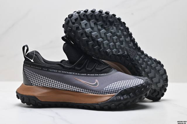 Company Grade Nike Acg Mountain Fly Gtx Outdoor Hiking Trail Running Shoes. This new outdoor shoe retains the high-top design of its predecessor, featuring a lightweight upper combined with reflective straps and woven eyelets for a seamless and comfortable feel, facilitating easy and smooth walking. The midsole incorporates soft React foam and Vaporfly technology, making even short hikes on rocky trails feel as easy and comfortable as walking in the city. The tacky rubber outsole provides excellent grip for climbing, helping you confidently handle various environmental challenges. Product Code: Da5424-200 Size: 40-45 ID: Jkd1 80-Qzh