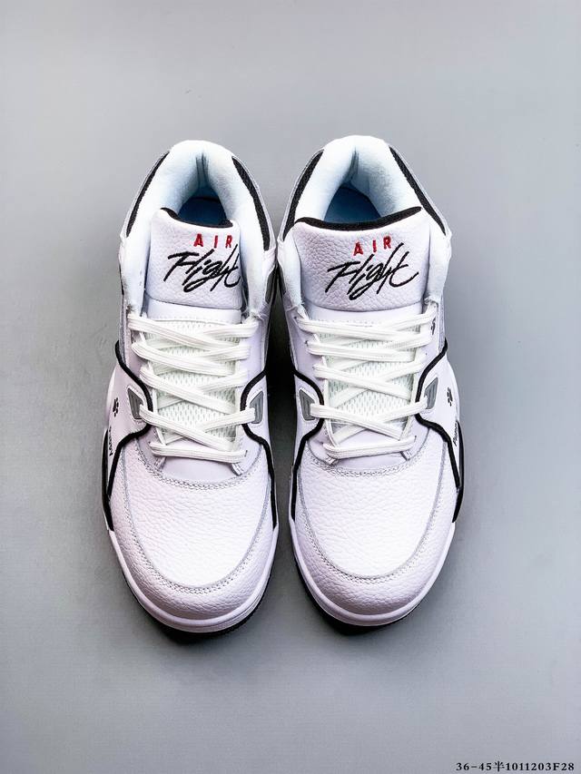 Company Grade! Nike Air Flight 89 Men's Sneakers, AJ4 Brother Series Basketball Shoes with Stamped Injection Holes, Product Code: 30625 25. Recreating the classic style of extraordinary basketball shoes from the late 80s, featuring a sleek leather construction and superior cushioning system, reviving the exceptional performance of this timeless classic. The upper combines leather and synthetic materials, offering a simple, sleek, and trendy sporty look. (