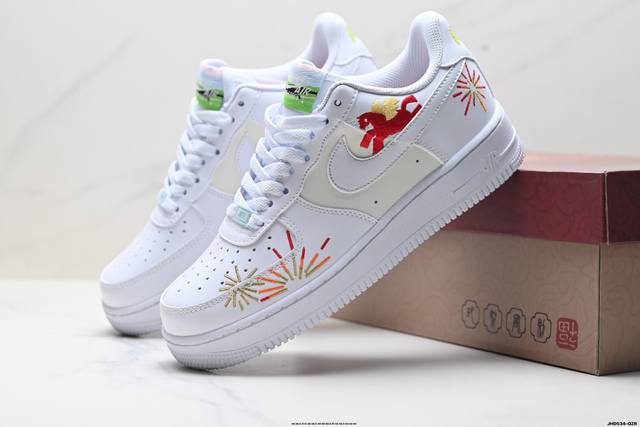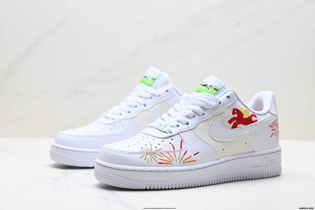 Company Grade Nike Air Force 1 '07 Year of the Horse Limited Edition (Cny) New Year Edition, Unbridled Series Nike Air Force 1 Classic Comfortable Breathable Low-Top Sneakers. The shoe features a creamy white upper with a colorful outline of the side logo and subtle embellishments. The new lace tags also incorporate a patterned pinball design to reflect the Year of the Horse theme. Product Code: Iq1133-111. Sizes: 36, 36.5, 37.5, 38, 38.5, 39, 40, 40.5, 41, 42, 42.5, 43, 44, 45. ID: Jhd534-Qzr.