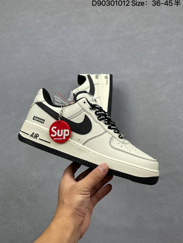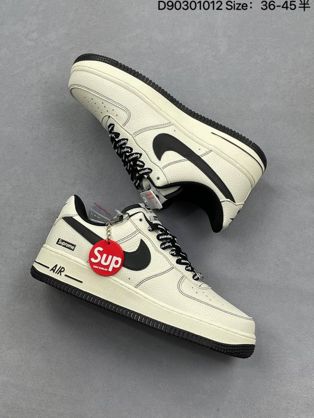 ) Authentic low-top Air Force silhouette crafted from original last and cardboard. Focused on export channels. Full-length internal honeycomb cushioning. Original box and accessories. Original factory midsole stamp. Perfect last sizing. Product Code: Su0-003. Sizes: 36, 36.5, 37.5, 38, 38.5, 39, 40, 40.5, 41, 42, 42.5, 43, 44, 45. ID: D90301012