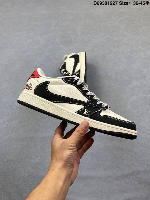 Company Grade: Nike Air Jordan 1 X Travis Scott AJ1 Reverse Swoosh Jordan 1 'DIY' Custom Nike Low-Top Basketball Shoes. Perfect quality, details as shown in the pictures. The upper is neatly cut, the perforations are clean and tidy, and the overall cleanliness of the midsole stitching is excellent. Product Code: Zh2598-163. Sizes: 36, 36.5, 37.5, 38, 38.5, 39, 40, 40.5, 41, 42, 42.5, 43, 44, 45. ID: D69301227.