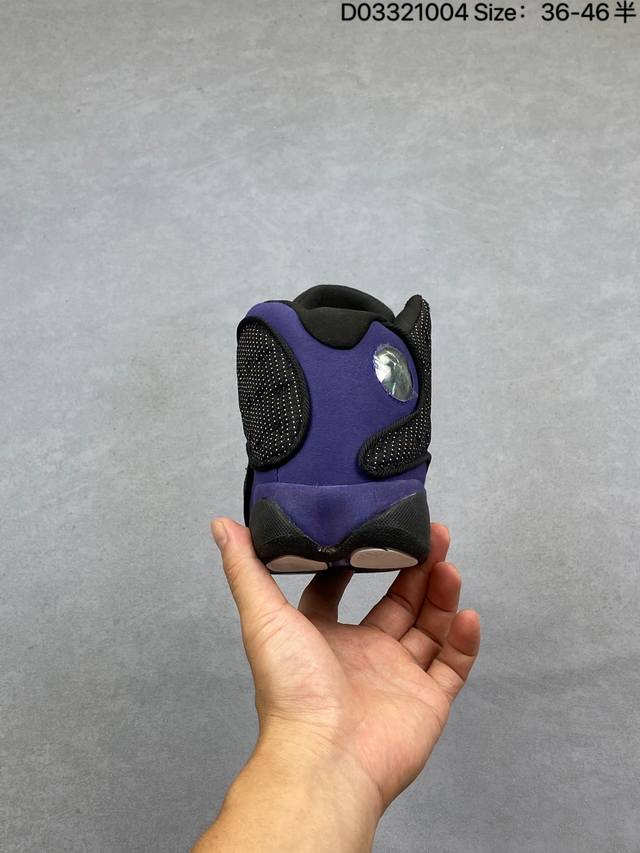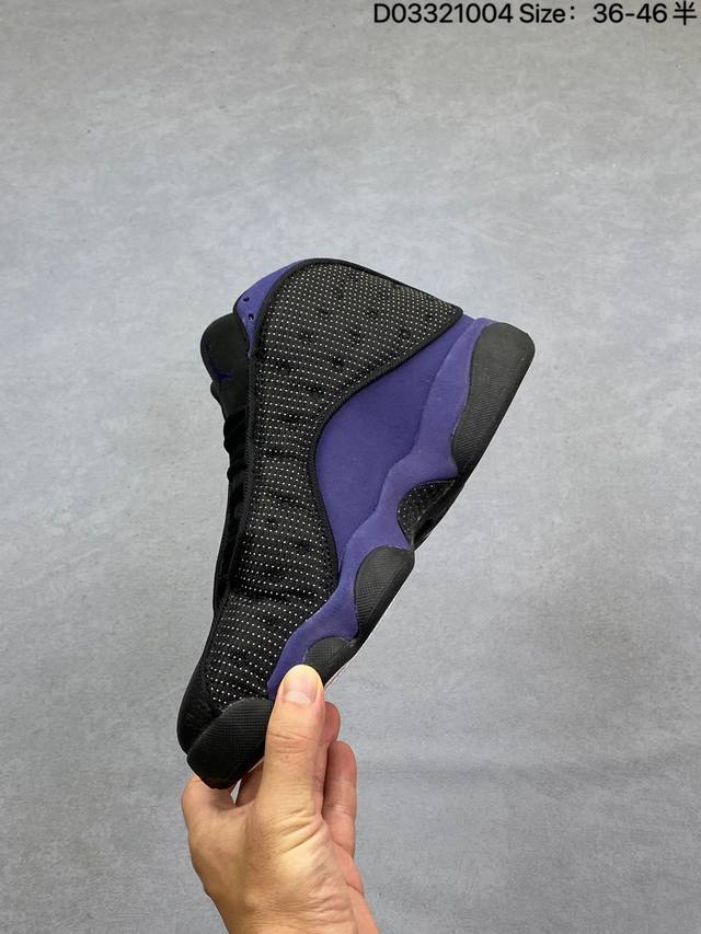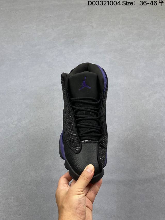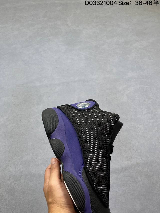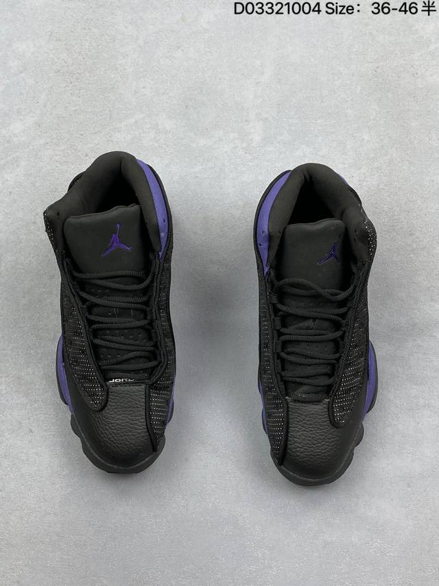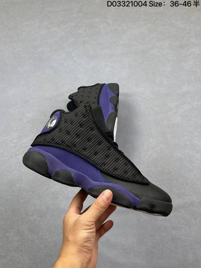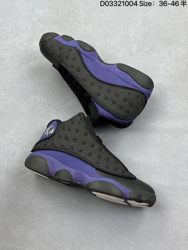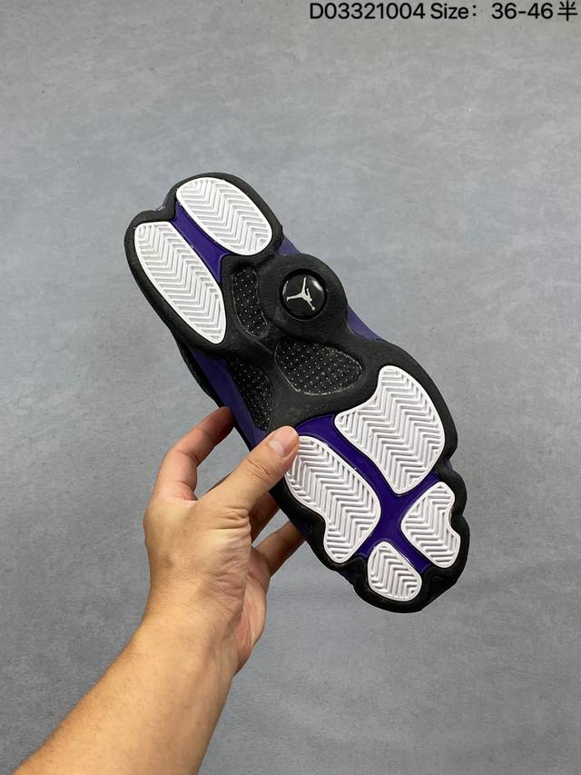 Company Grade Nike Air Jordan 13 Retro High-Top AJ13. This Air Jordan 13 basketball shoe is designed in the style of a black panther, drawing inspiration from cat-like reflexes and predatory instincts on the court. It features an outsole shaped behind the panther's paws and unconventional cat-shaped holographic eyes. It also boasts innovations such as Zoom Air units in the forefoot and heel, and a carbon fiber plate. This retro Air Jordan basketball shoe showcases originality with classic design details and court-inspired cushioning technology. Product Code: 414571-122 Sizes: 36-45 (including half sizes) Code: D033 04