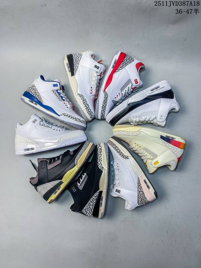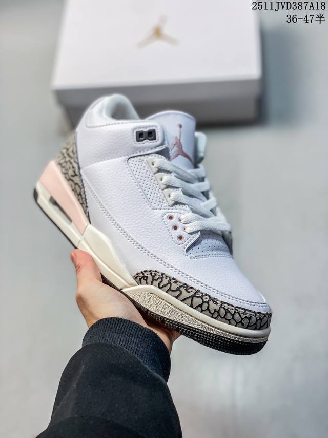 Company Grade Nike Air Jordan 3 Retro Series, a mid-top basketball shoe featuring the Air Jordan 3 "Reverse Swoosh" design, suitable for men and women. As one of the most widely recognized athletic shoes in the Air Jordan series, it features a lightweight, visible cushioning configuration similar to the original 2580 model. Classic details and materials commemorate this legendary shoe. The upper combines fabric, leather, and synthetic materials for durability and excellent structural support. Nike Air cushioning in the heel provides a lightweight, responsive, and comfortable feel, while the rubber outsole offers strong traction for various surfaces. (DDD 11Jvd387A18 DDD)