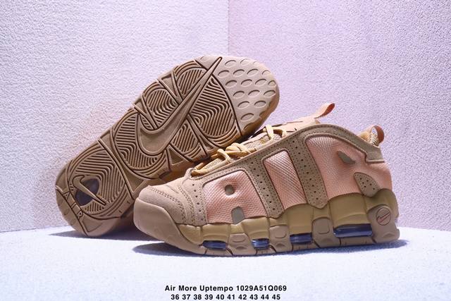 Company Grade: Nike Air More Uptempo GS Barely Green, a classic high-street versatile casual basketball shoe in the USA colorway, inspired by popular street graffiti culture. The overall design is exaggerated and charismatic. The thick, textured leather upper features two large "Air" logos on the sides. Its unique and cool appearance is stunning. Xm1029Q069