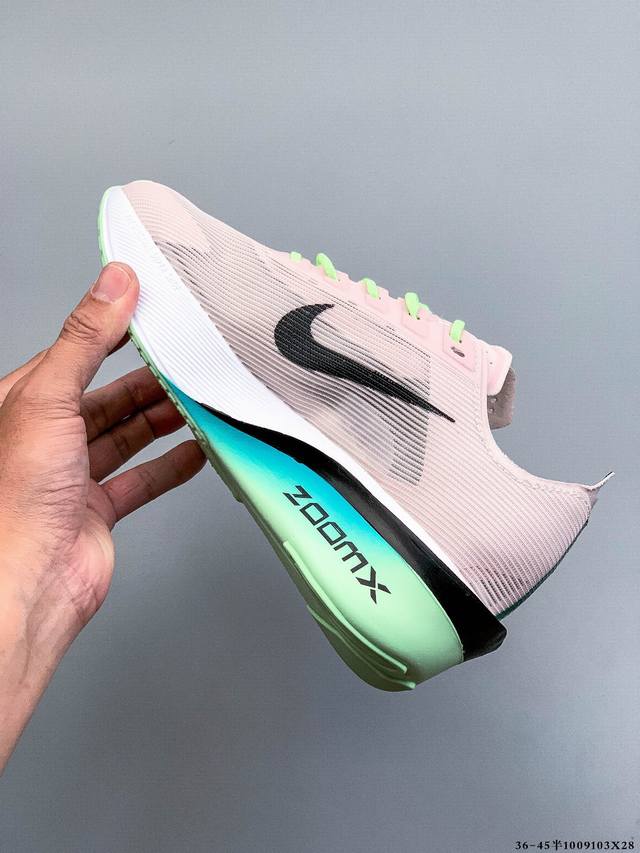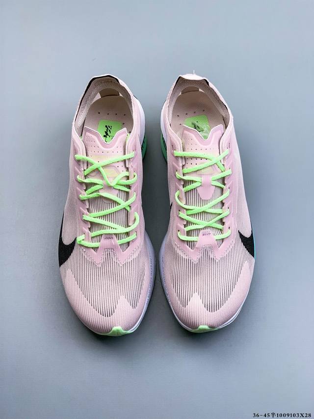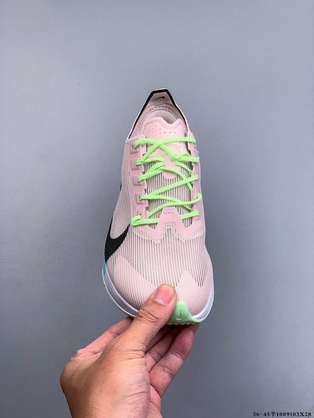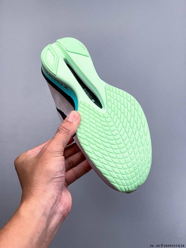 Company Grade! Nike Air Zoom Alphafly Next% 4, the newest marathon super running shoe. The lightest and most tested Nike Alphafly ever, tested and validated by elite marathon athletes and equipped with Air Zoom cushioning, designed to help runners achieve breakthroughs and better results. During its development, Alphafly 3 helped Nike athlete Kelvin Kiptum break the marathon world record with a time of 0:35. The Alphafly's dynamic design remains unchanged, with no changes to the Air Zoom cushioning unit, Flyplate carbon fiber plate, and Zoomx foam. However, the overall system's manufacturing method has been slightly adjusted, optimized, and improved to enhance its assistance to athletes. Key updates include a one-piece sole providing a smooth and stable "heel-to-toe" transition; a wider full-length Flyplate carbon fiber plate providing stable propulsion; a new Fast Shot outsole ensuring excellent traction and grip; and a new Atomknit 3.0 upper providing enhanced control, breathability, and midfoot support.