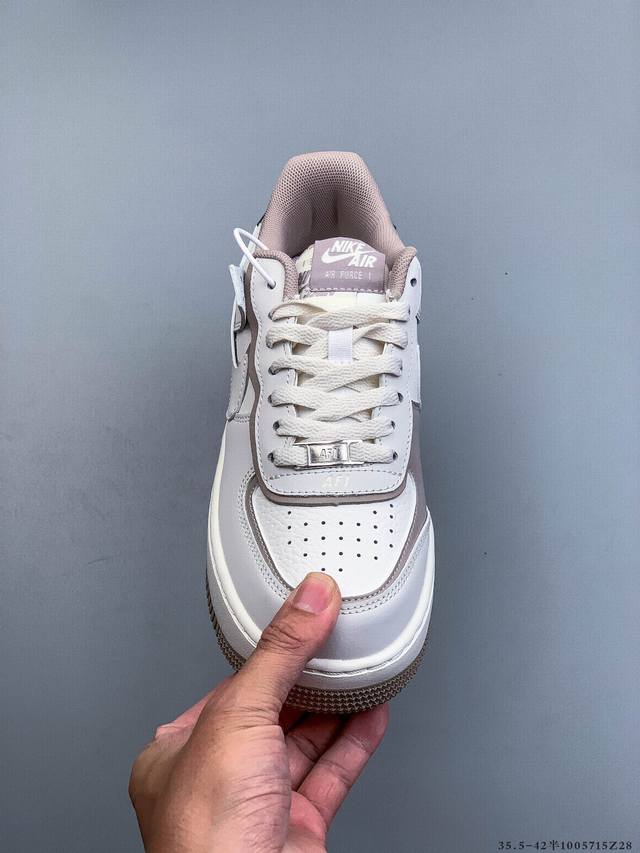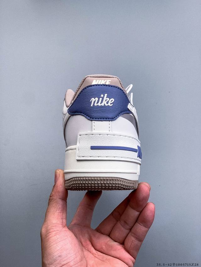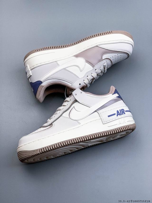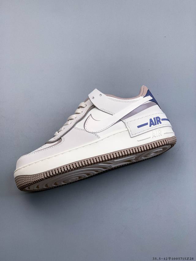 Company Grade Top Layer! Nike Air Force 1 Shadow features a layered Swoosh design with macaron accents on the side, while the iconic "Air" lettering is also layered on the heel. (