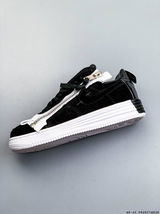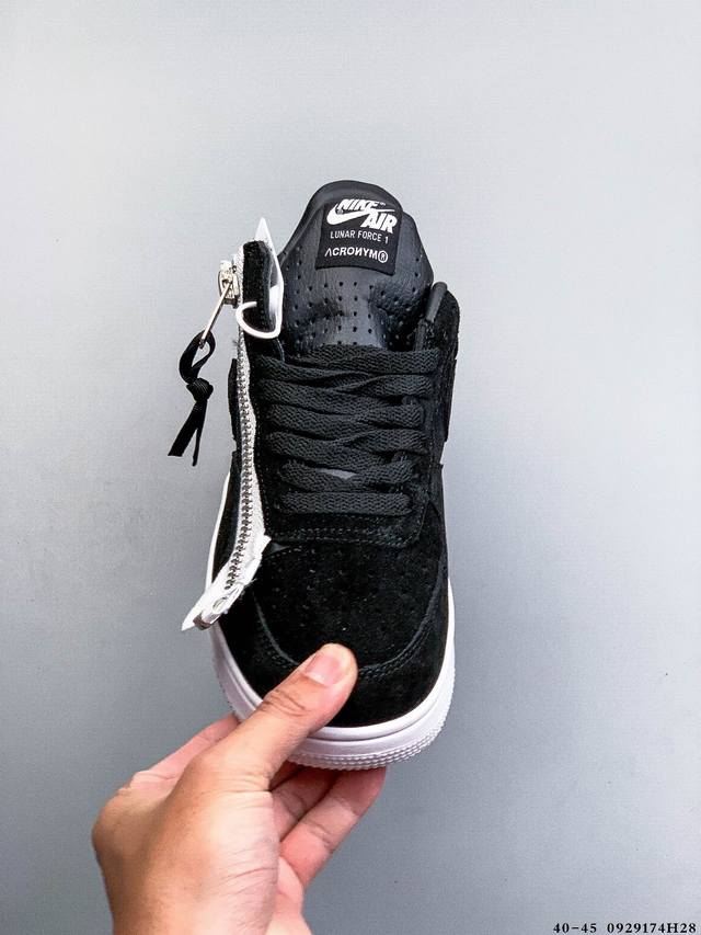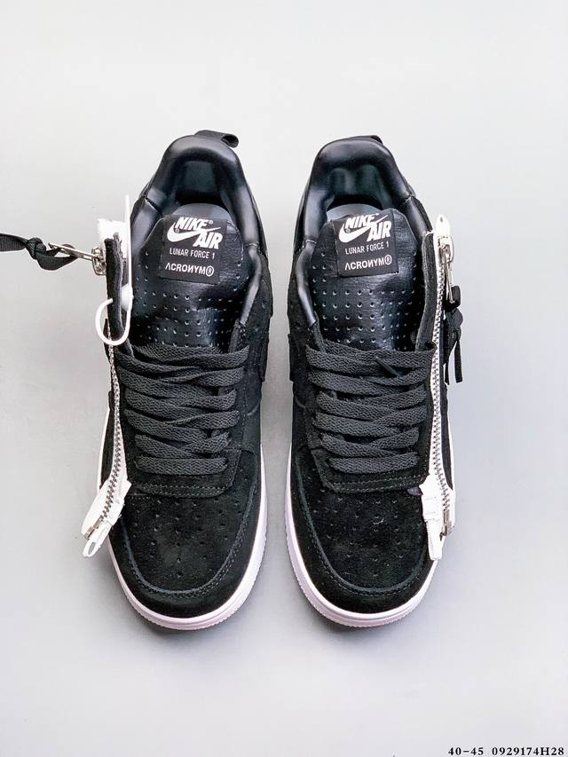 Company Level! Acronym x Nike Lunar Force 1 Air Force collaboration: zippered, casual, wraparound, and durable low-top sneakers. This Nike Lunar Force 1 x Acronym collaboration is dressed in Triple White from beginning to end. Still based on the low-top Lunar Force 1, the functional zipper provides high recognition and a strong visual impact. 0929174H28