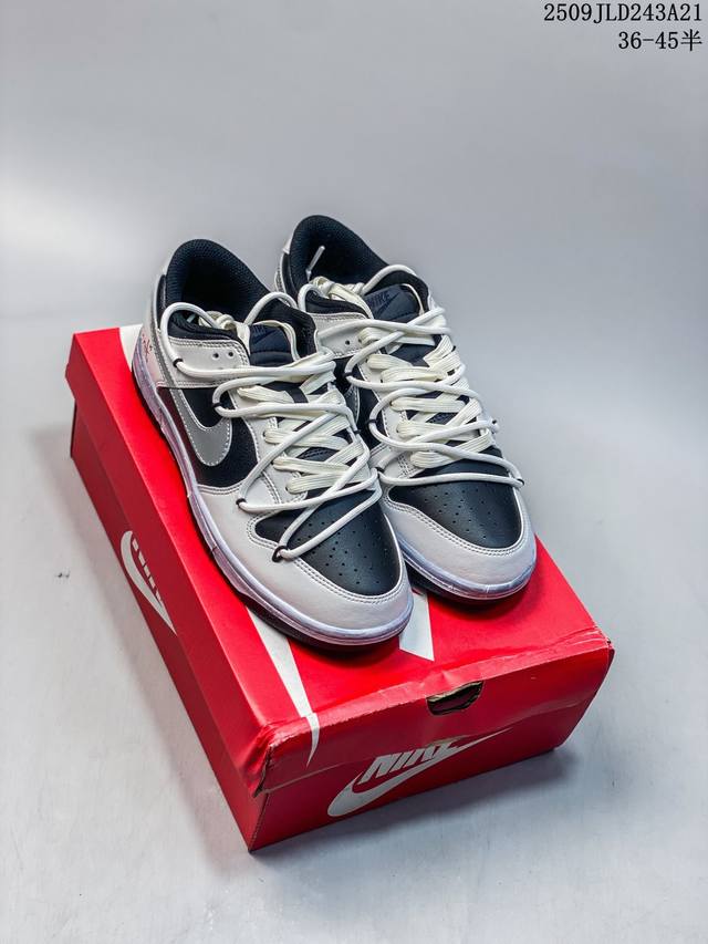 Company Level! Futura x Nike Dunk Low Sb Collaborative Deconstructed Lace-Up Skateboard Shoes