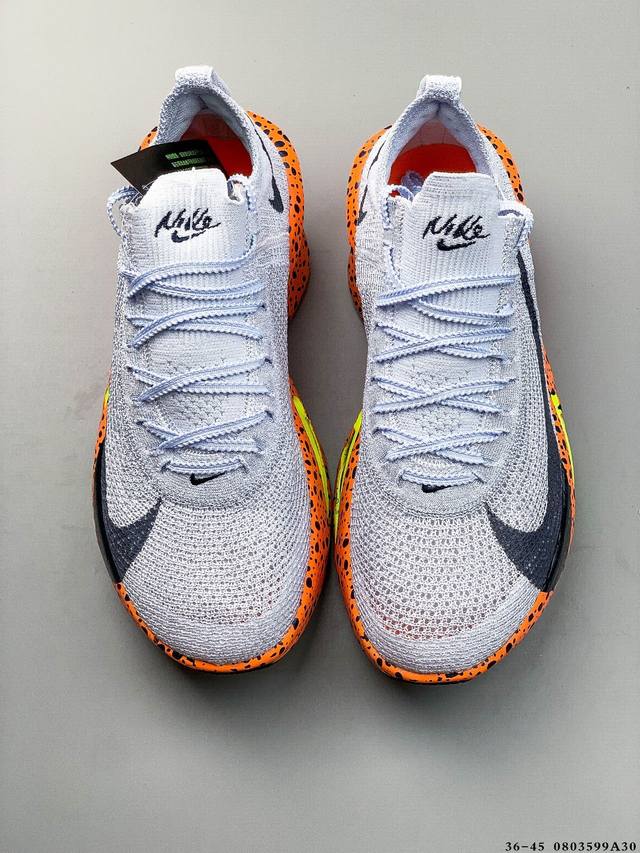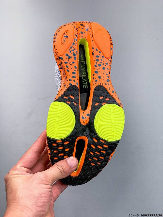 ). For the first time, a one-piece sole replaces a separate heel and forefoot design for smoother and more stable landing transitions. Full-length Zoomx foam provides lightweight and ample cushioning, ensuring the full rebound advantage of thick-soled running shoes during long runs. Serrated lace edges prevent loosening and provide a more secure fit. The lace holes have been redesigned to reduce pressure. 0803599A30