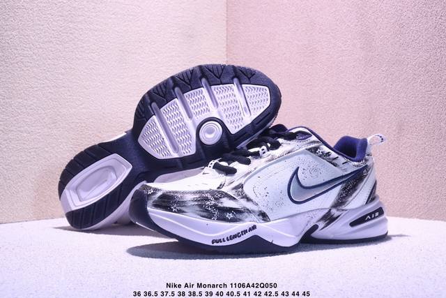 Company-grade Nike Air Monarch Iv Leather Everyday Versatile Shock-absorbing and Anti-slip Low-top Casual Shoes. The upper is crafted from durable leather, making it easy to care for. The overall color scheme is predominantly white with blue accents, a simple and versatile design that goes with everything. It features full-length embedded Air cushioning for a superior shock absorption experience, and the platform sole adds height and a unique feel. Product Code: 415445-102 Sizes: 36 36.5 37.5 38 38.5 39 40 40.5 41 42 42.5 43 44 45 Xm1106Q05 0
