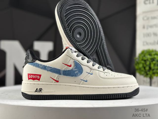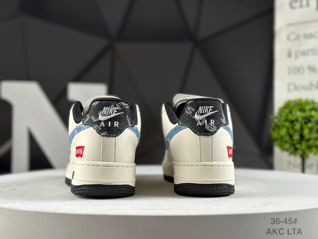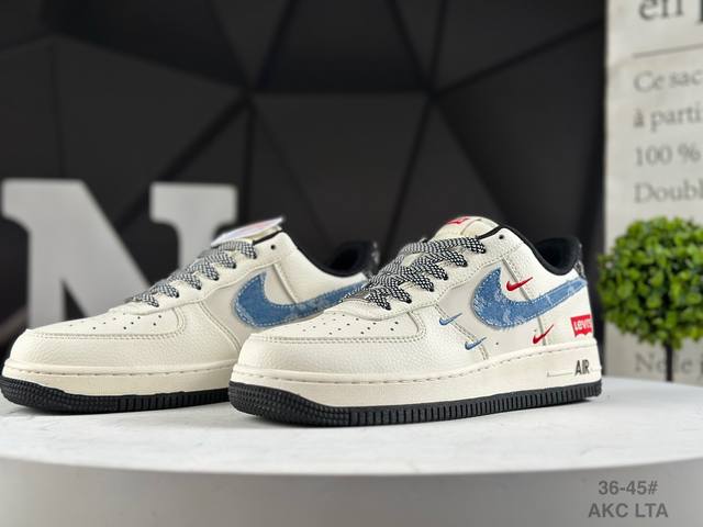 Company-level Nike Air Force 1 '07 Low "Levi's co-branded beige denim four-swoosh" Air Force 1 low-top sneakers, casual shoes, hemming and sewing process is difficult, original last, original cardboard, original shoe box, custom hardware accessories, built-in full-length air cushion, original sole